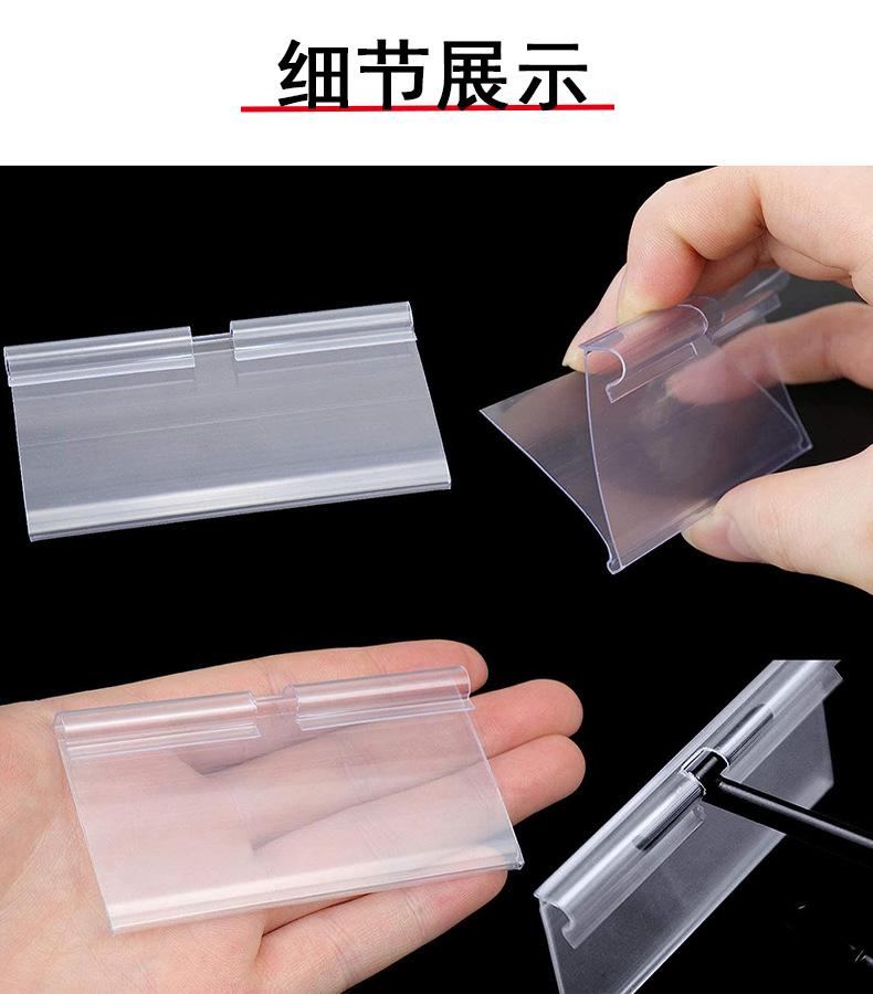 Prateleira de supermercado local, loja de departamentos, etiqueta de preço de mercadoria, etiqueta de gancho de plástico transparente, etiqueta de preço de PVC