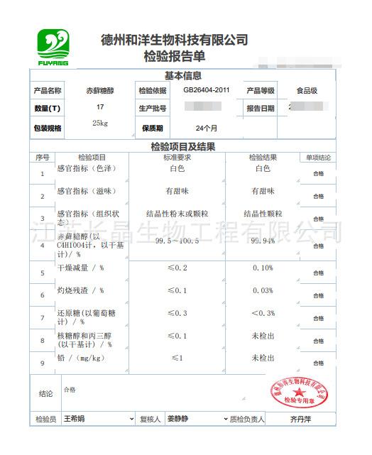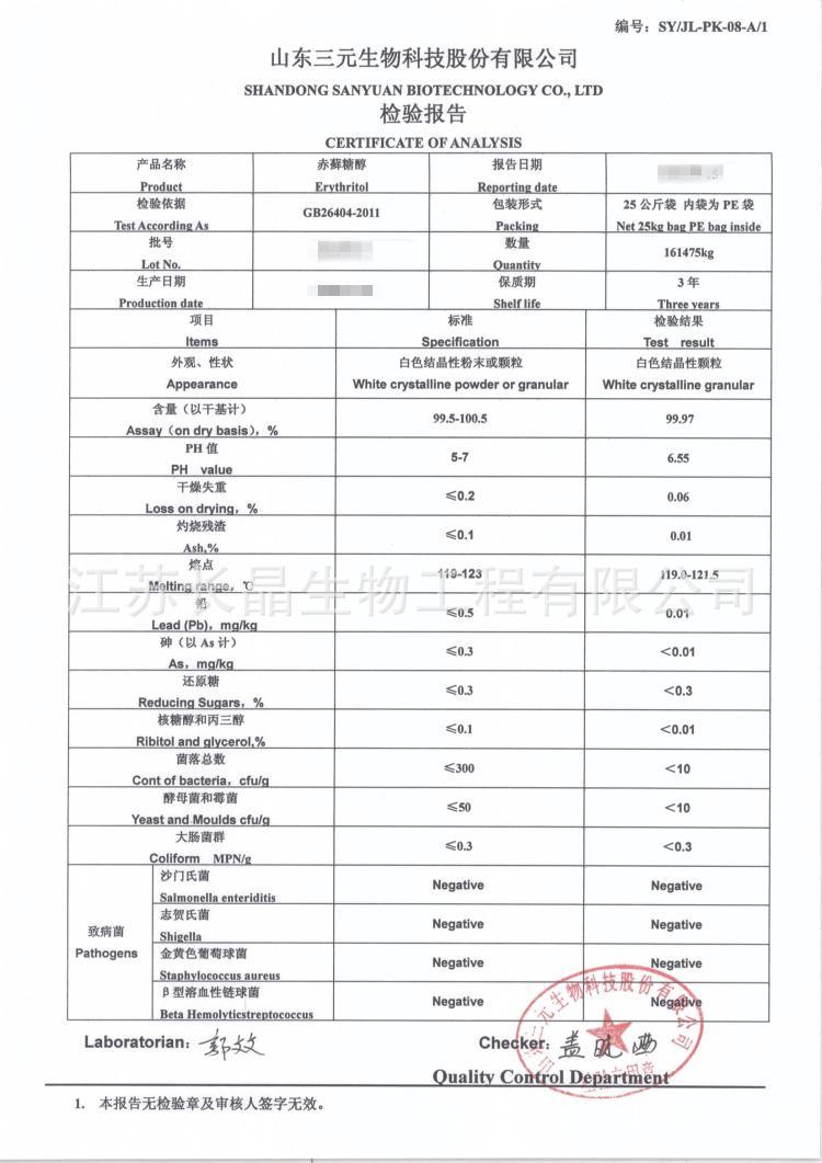 O eritritol, como adoçante, pode ser usado na indústria alimentícia para chocolate, produtos de panificação, açúcar de mesa, refrigerantes, doces, etc.