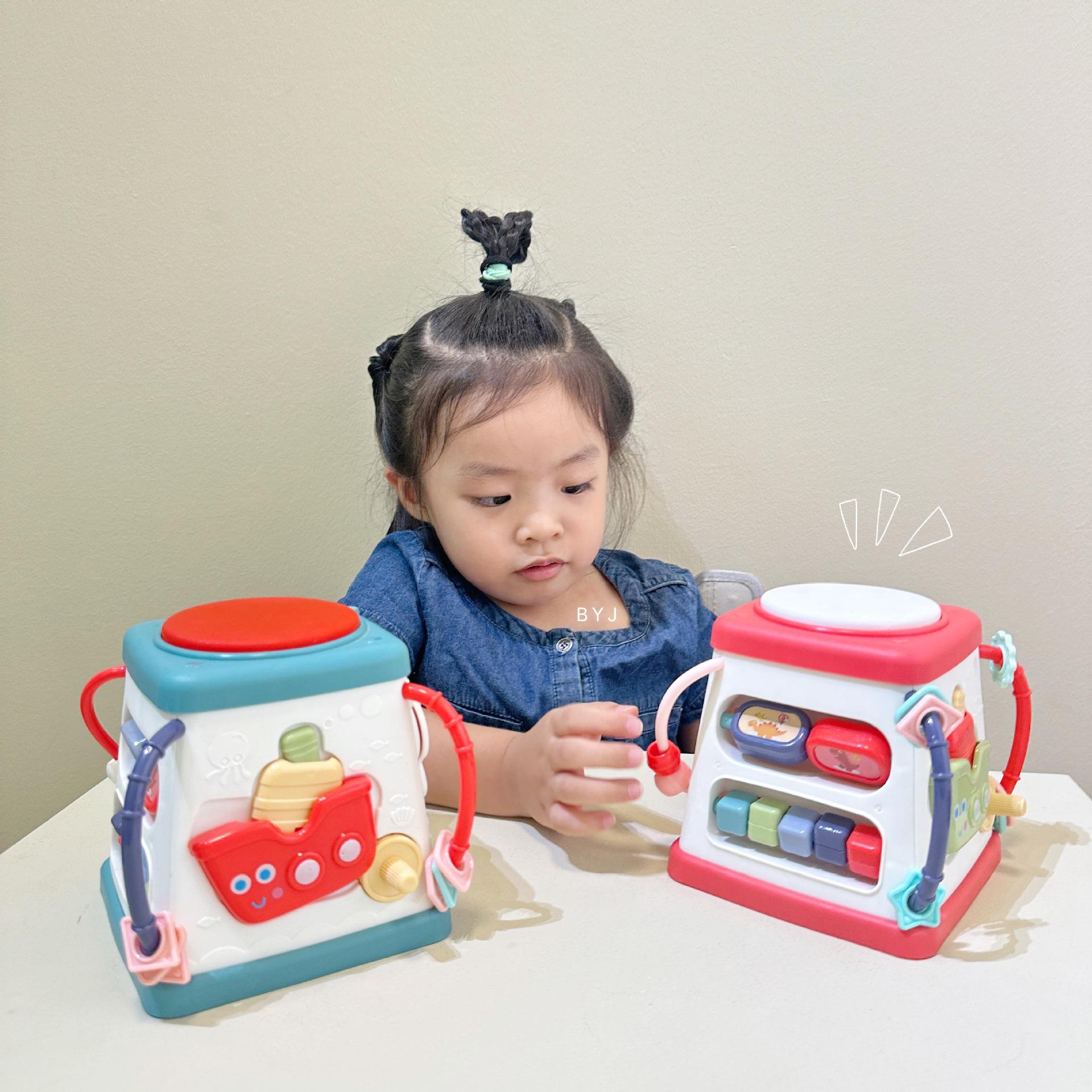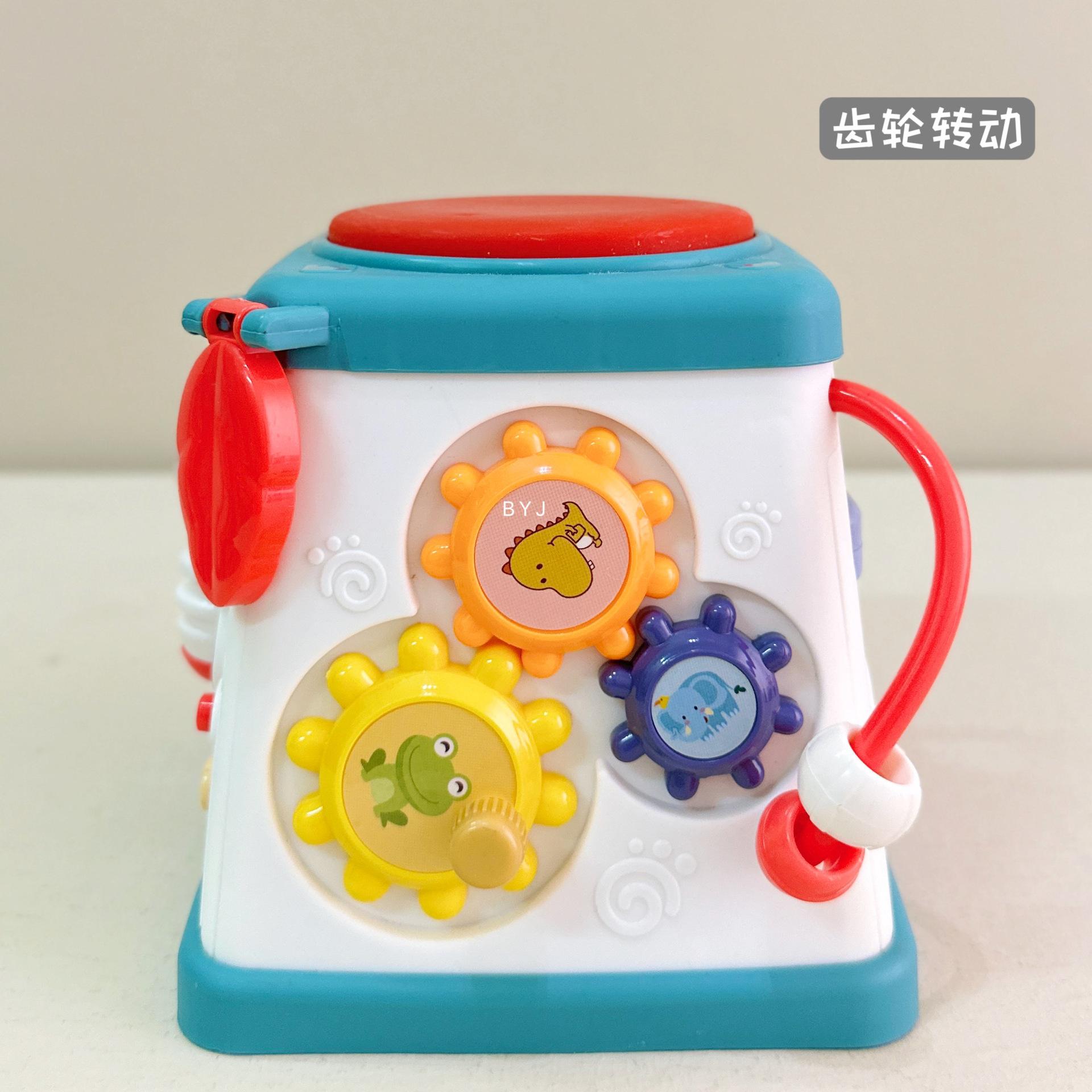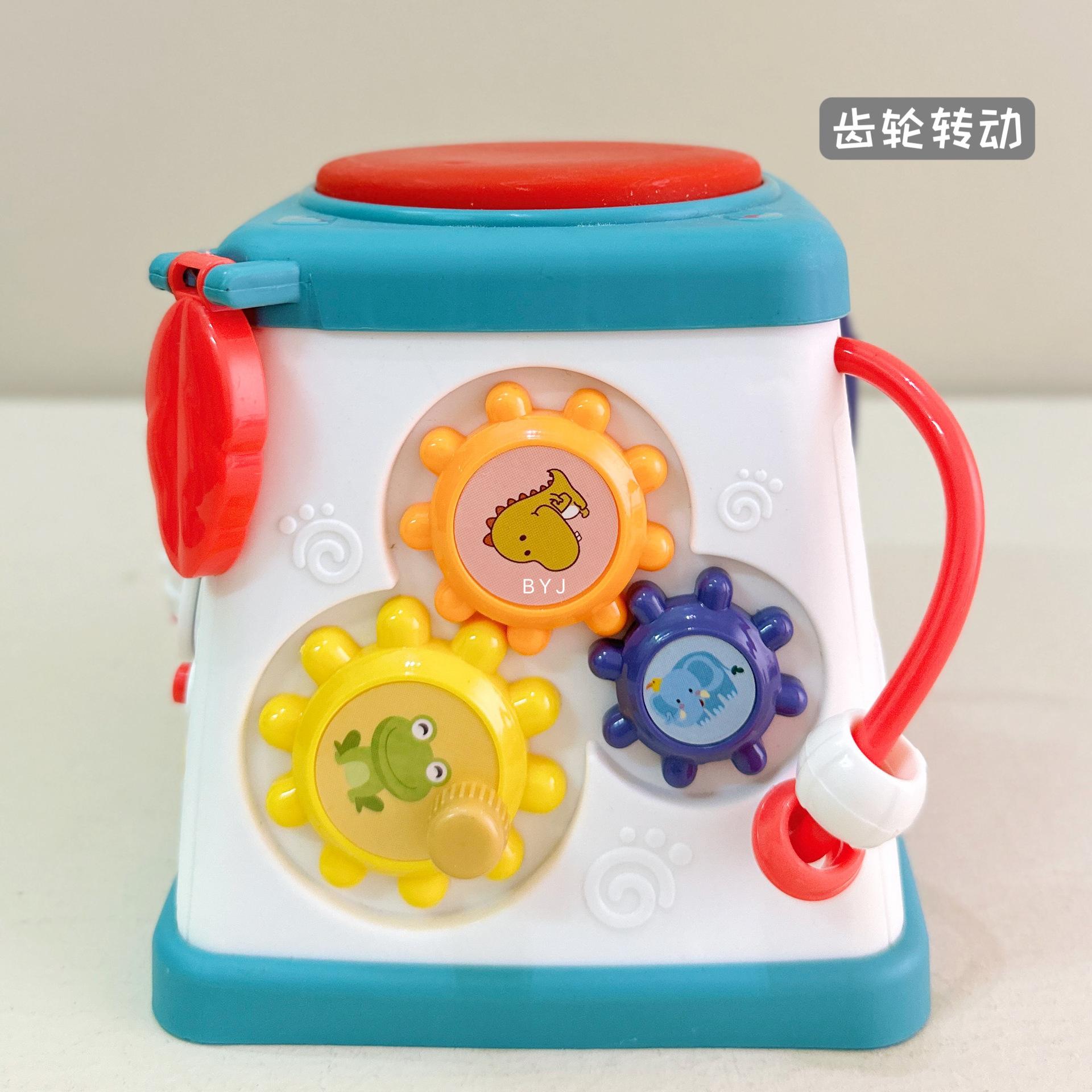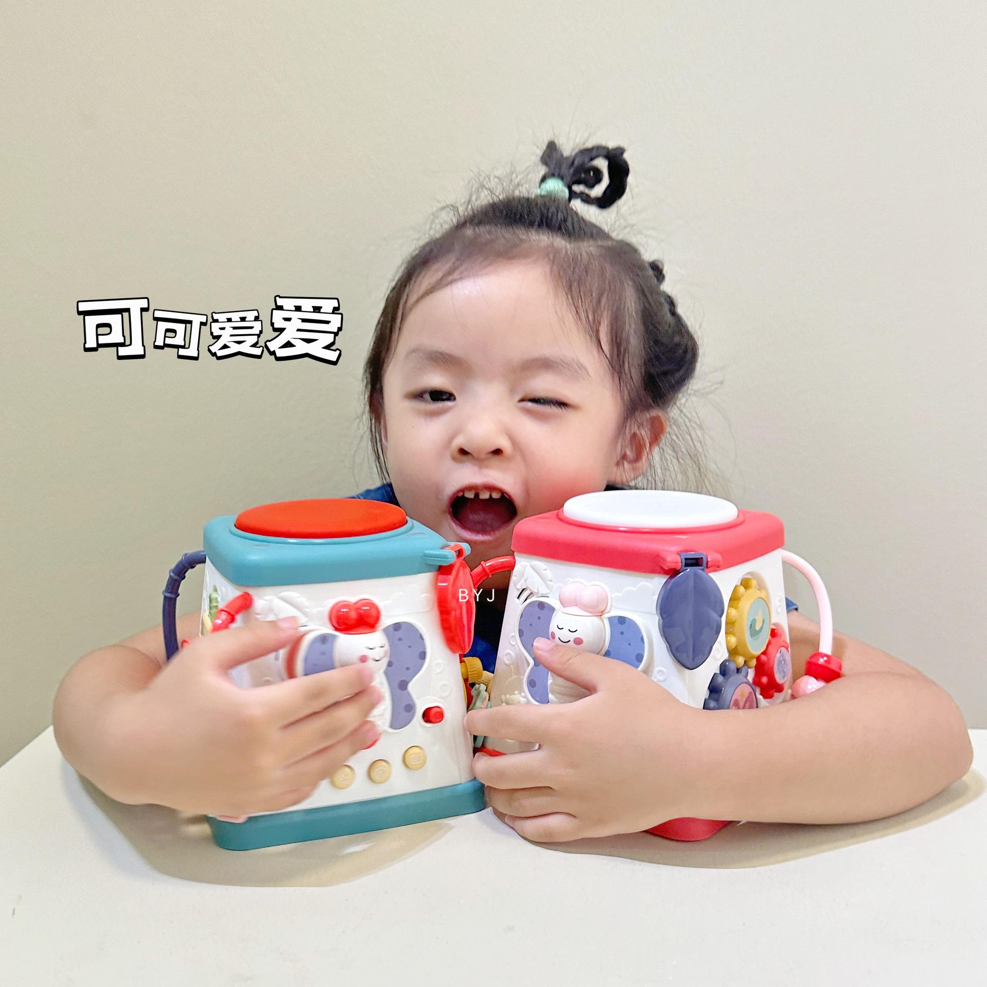 Caixa de tesouro fofa, tambores de 5 lados, mãos pequenas exploram poliedros, conteúdo divertido diferente a cada ano, borboletas giratórias, conteúdo educacional infantil, veleiros divertidos, engrenagens giratórias, bolas giratórias, tambores musicais, várias maneiras de brincar esperando os bebês desbloquearem
