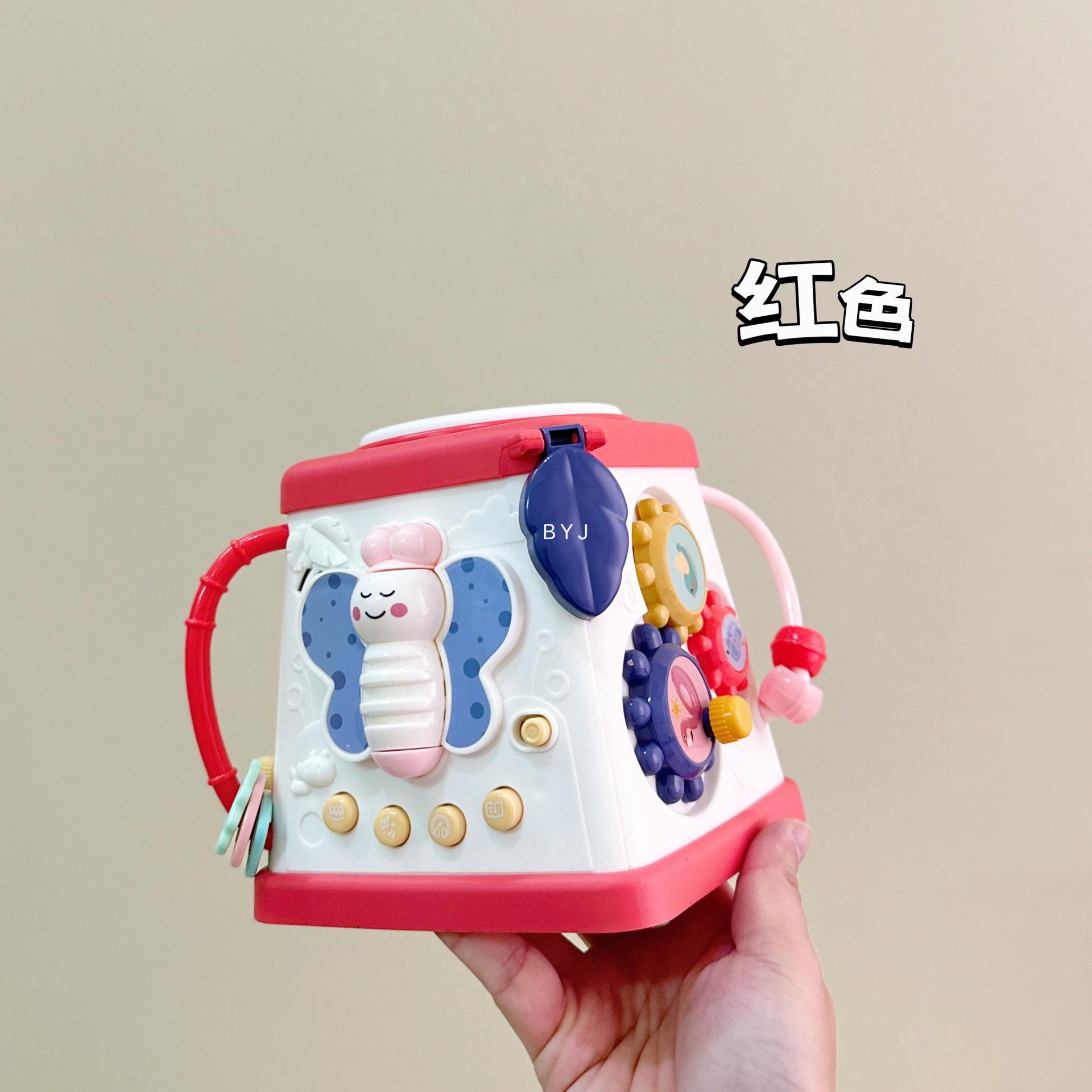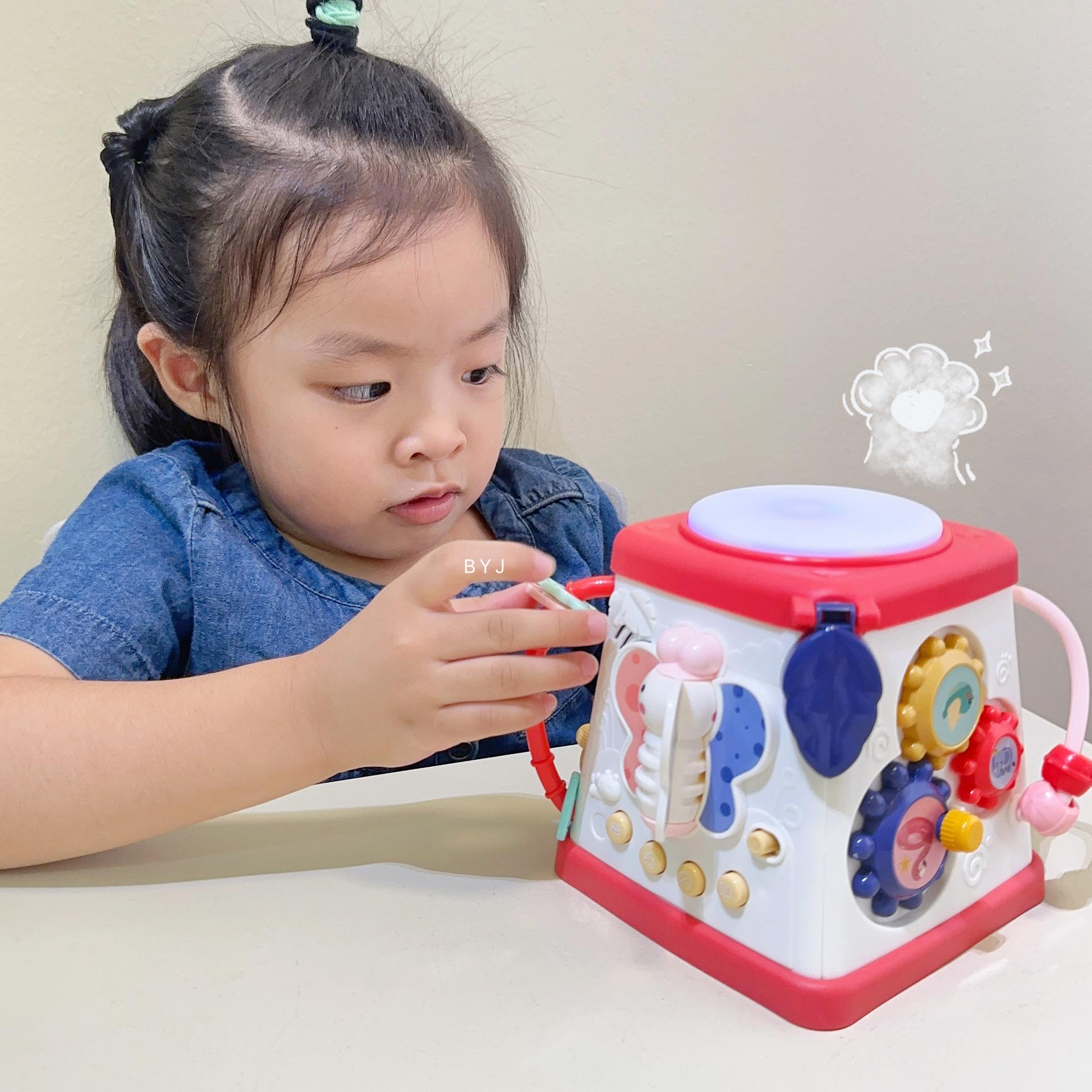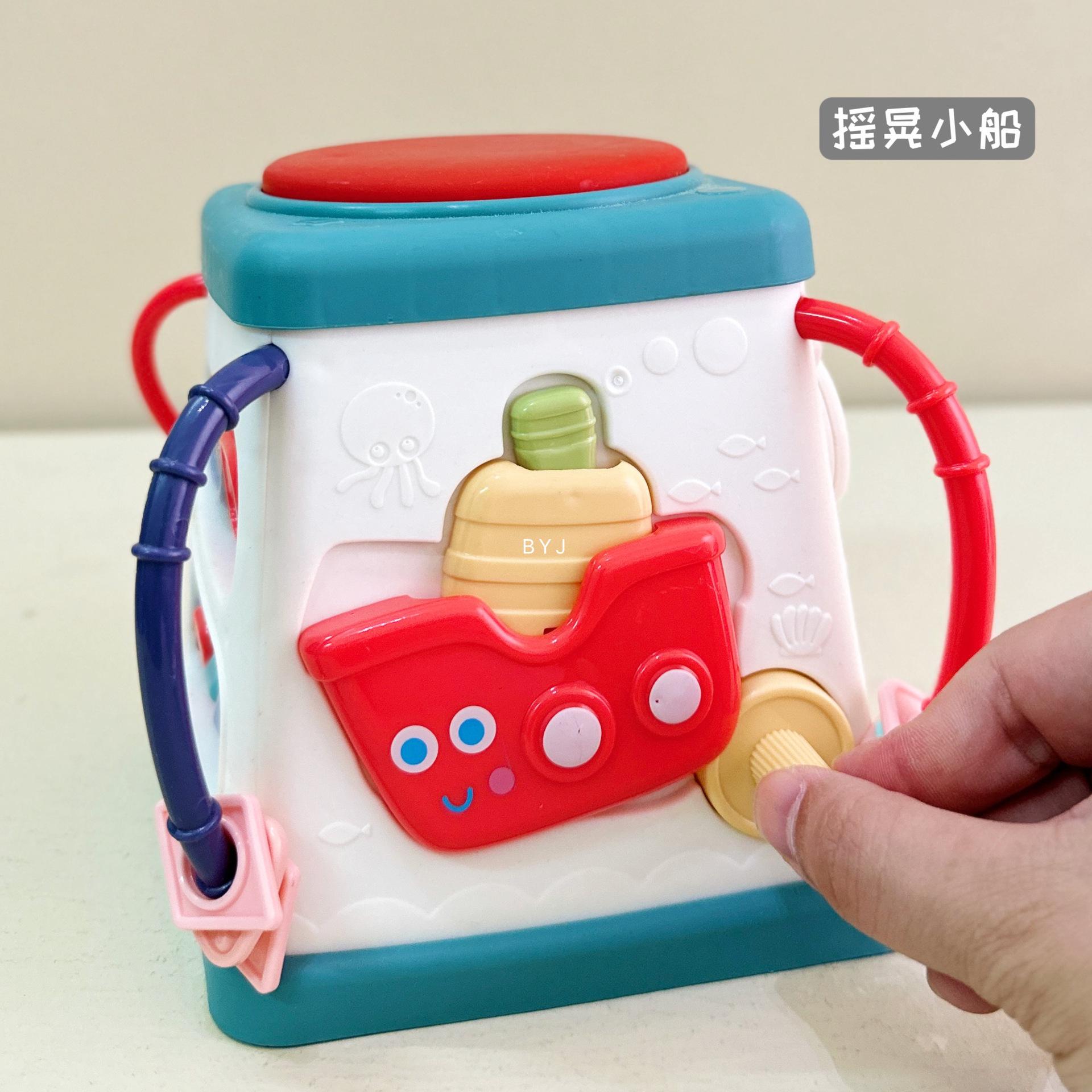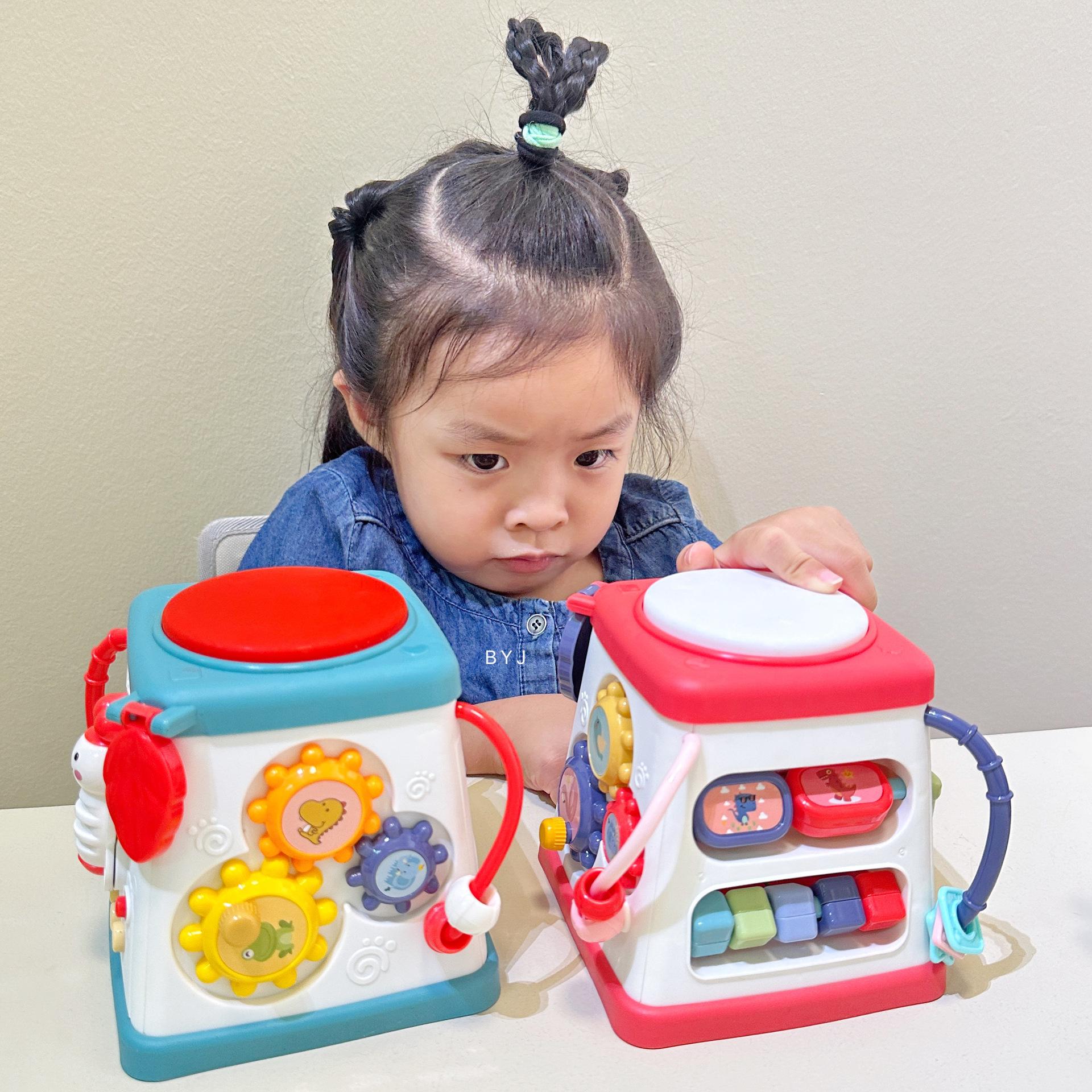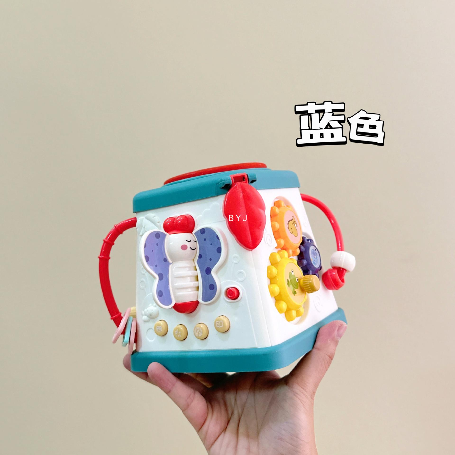 Caixa de tesouro fofa, tambores de 5 lados, mãos pequenas exploram poliedros, conteúdo divertido diferente a cada ano, borboletas giratórias, conteúdo educacional infantil, veleiros divertidos, engrenagens giratórias, bolas giratórias, tambores musicais, várias maneiras de brincar esperando os bebês desbloquearem