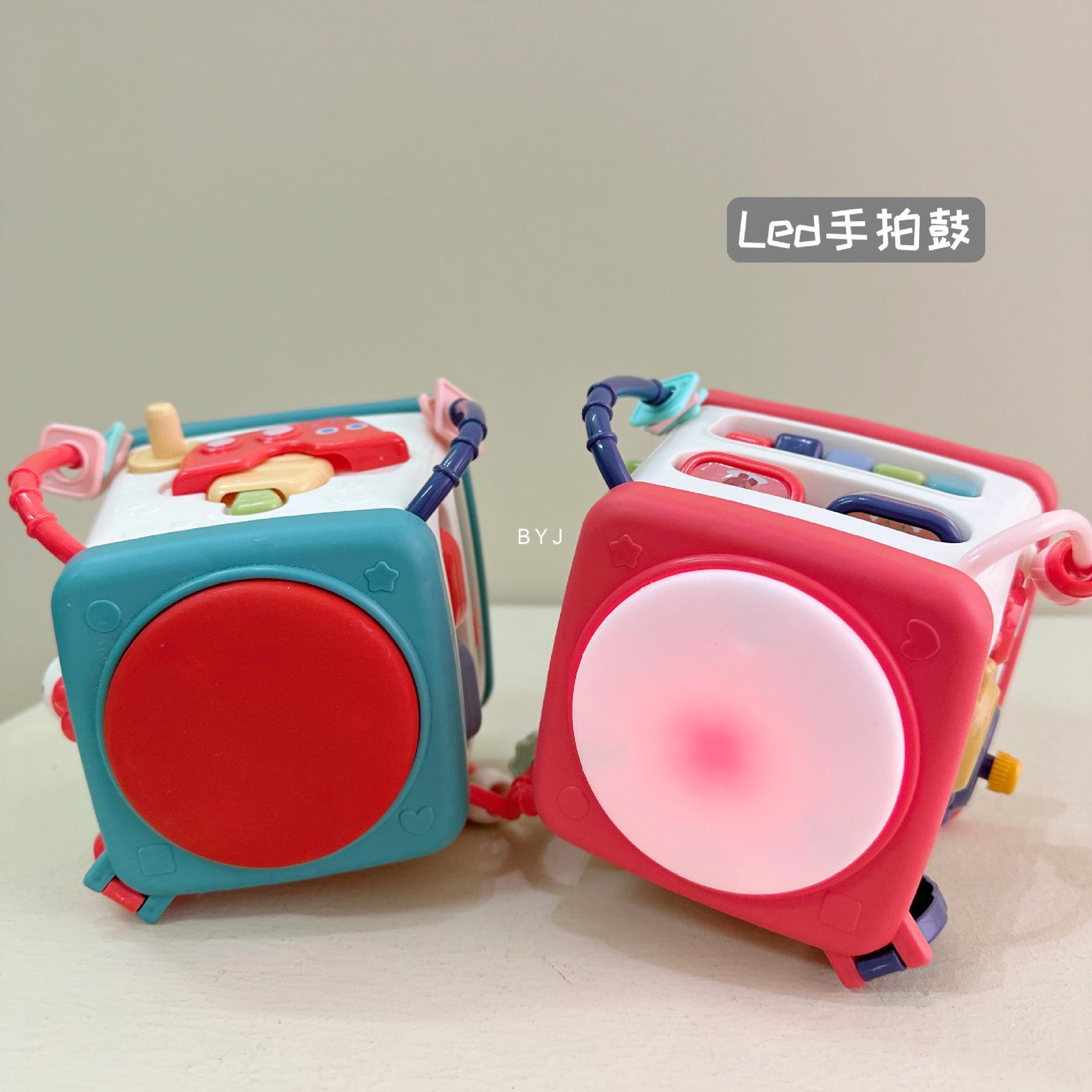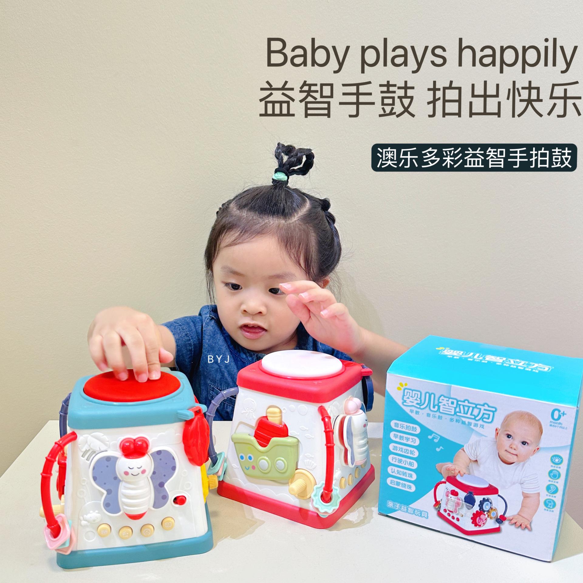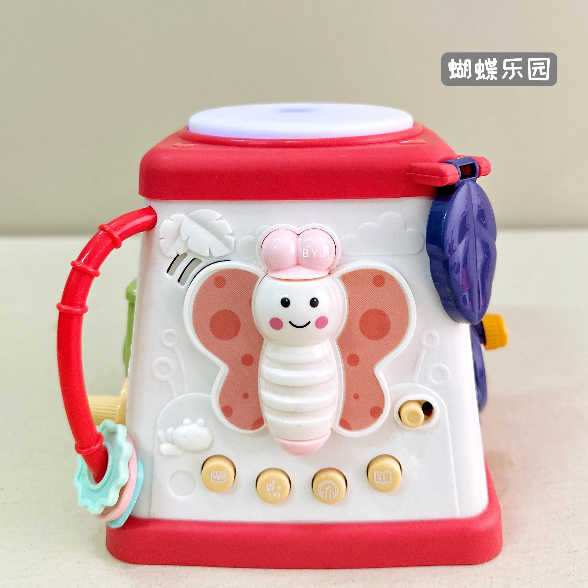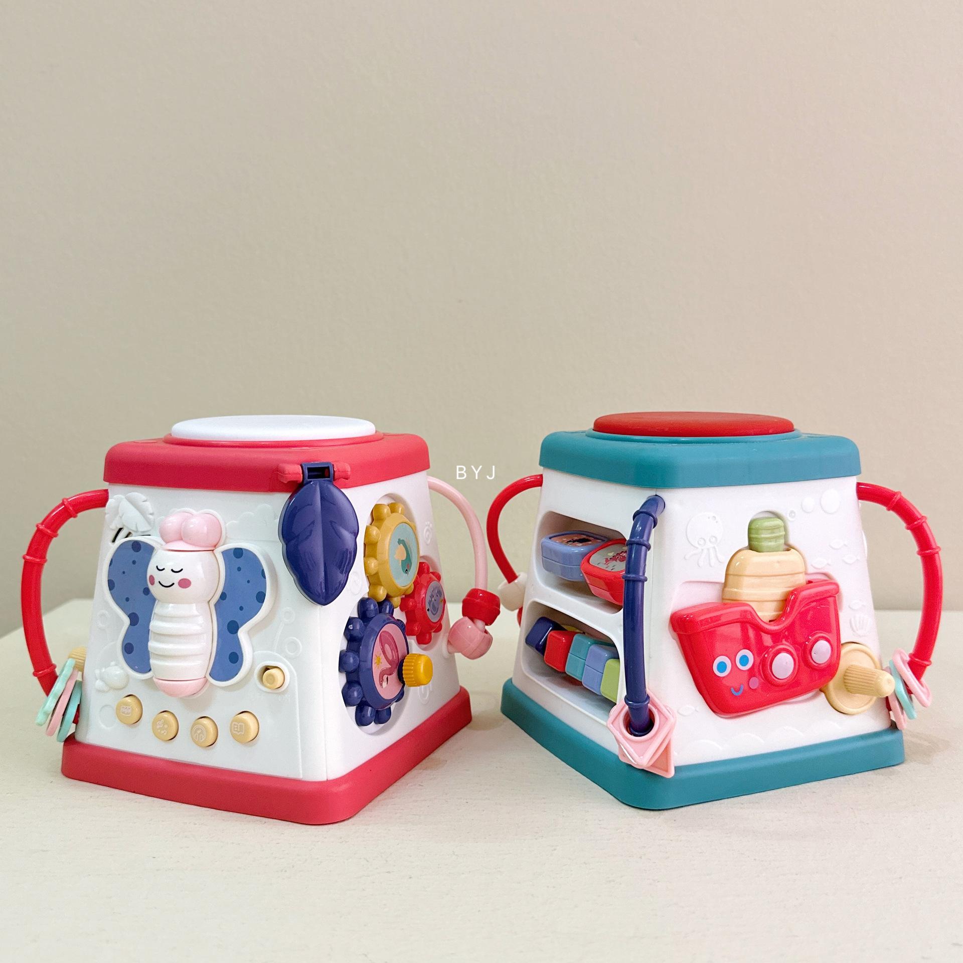 Caixa de tesouro fofa, tambores de 5 lados, mãos pequenas exploram poliedros, conteúdo divertido diferente a cada ano, borboletas giratórias, conteúdo educacional infantil, veleiros divertidos, engrenagens giratórias, bolas giratórias, tambores musicais, várias maneiras de brincar esperando os bebês desbloquearem