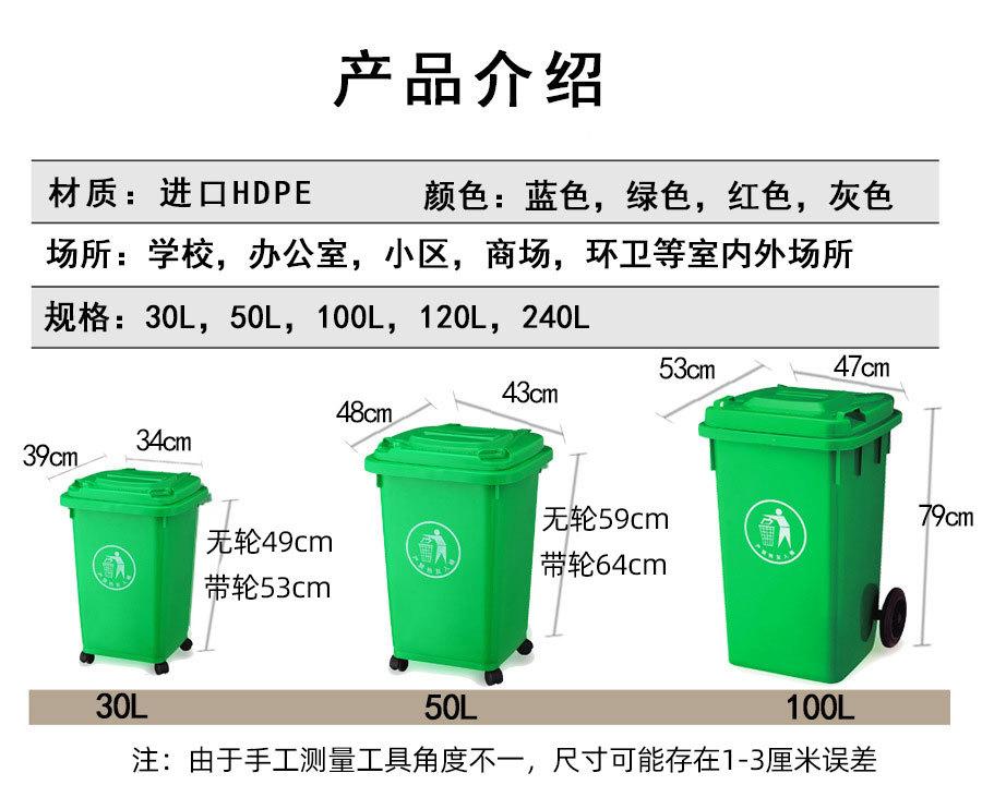 Descrição do padrão de impressão: A fábrica fornece impressão regular gratuita. Se o cliente tiver necessidades personalizadas, os barris de 240L com uma quantidade maior que 10 podem ser impressos com modelos gratuitamente. Além disso: Geralmente, se a quantidade for menor que 10 barris, uma taxa de modelo de 60 yuans será cobrada para barris pequenos e 80 yuans serão cobrados para barris grandes acima de 100L. O preço da lata de lixo não inclui impostos e transporte. 9 pontos serão adicionados para emitir uma fatura de 13%