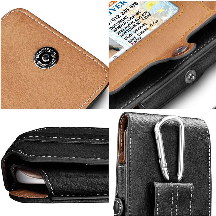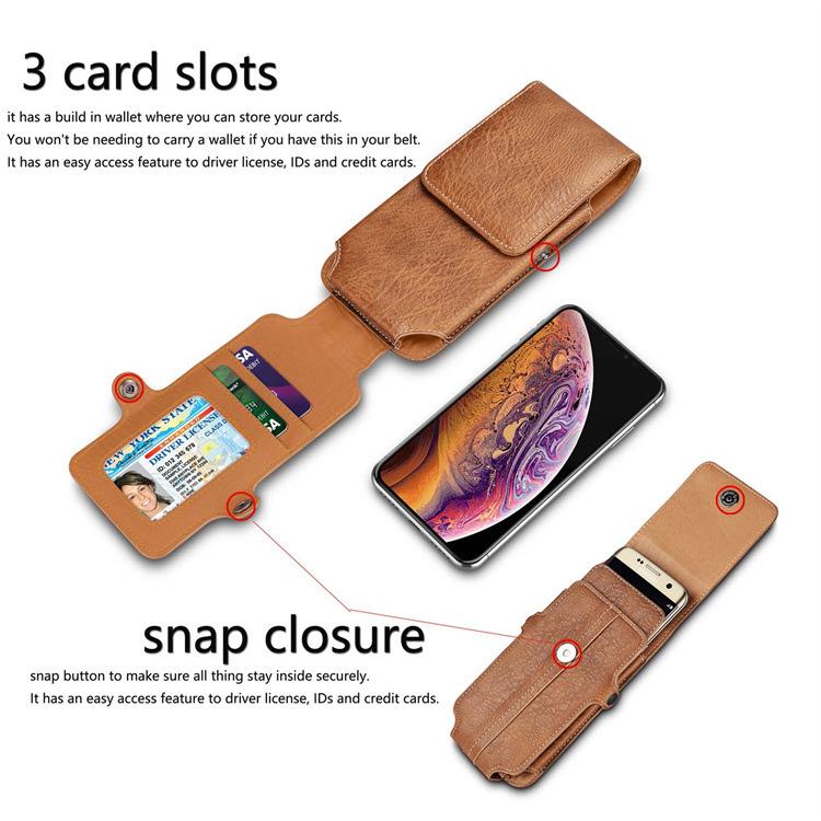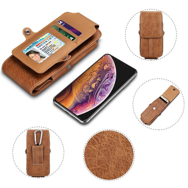 Nombre del producto: Riñonera colgante de cintura universal, funda de cuero para llevar cinturón, inserción de tarjeta colgante de cintura, protección anticaídas, funda tradicional universal para teléfono móvil doméstico.