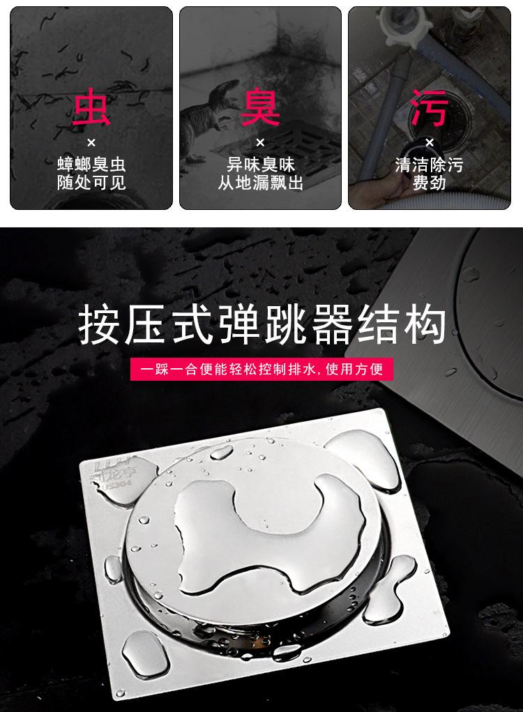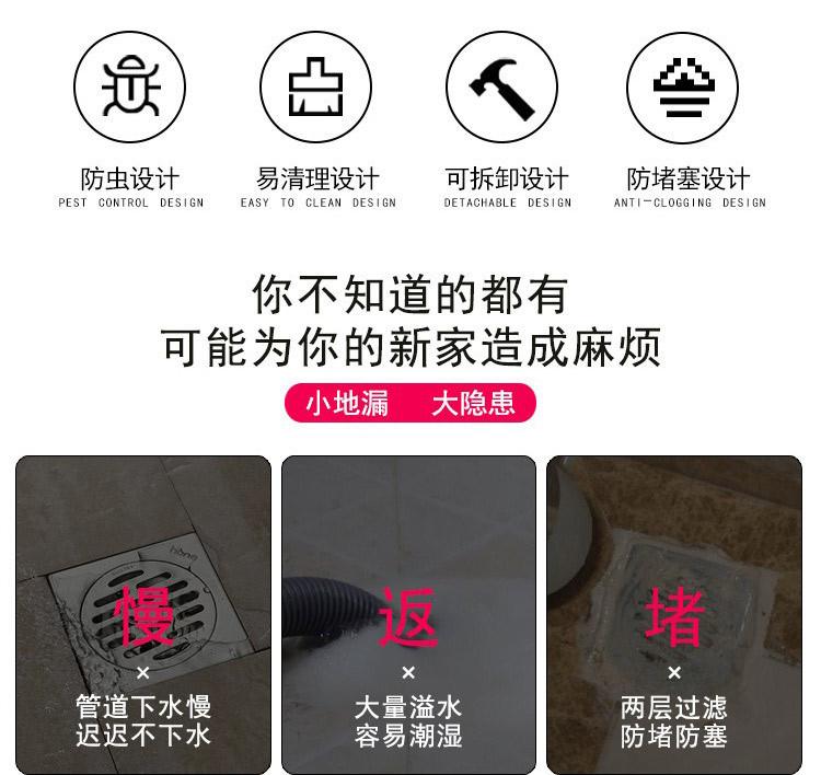 Nota: Este desagüe de suelo emergente es adecuado para el drenaje de desagües de suelo de baño ordinarios y no es adecuado para desagües de suelo que retienen agua, como lavabos, estanques de peces, etc. ¡No puede almacenar agua! ¡No puede almacenar agua! ¡No puede almacenar agua!
