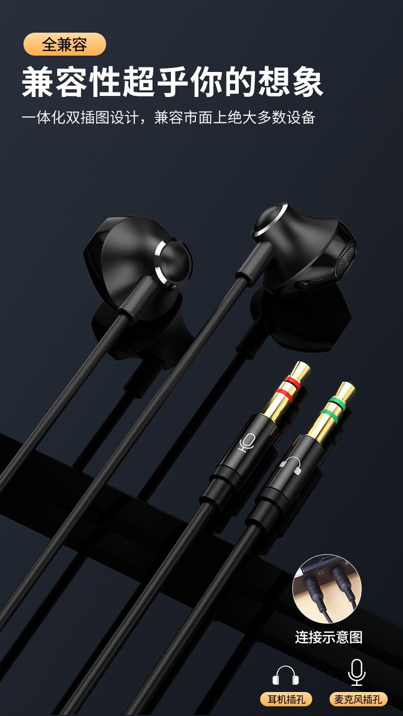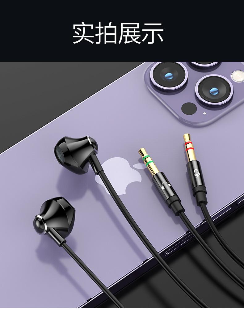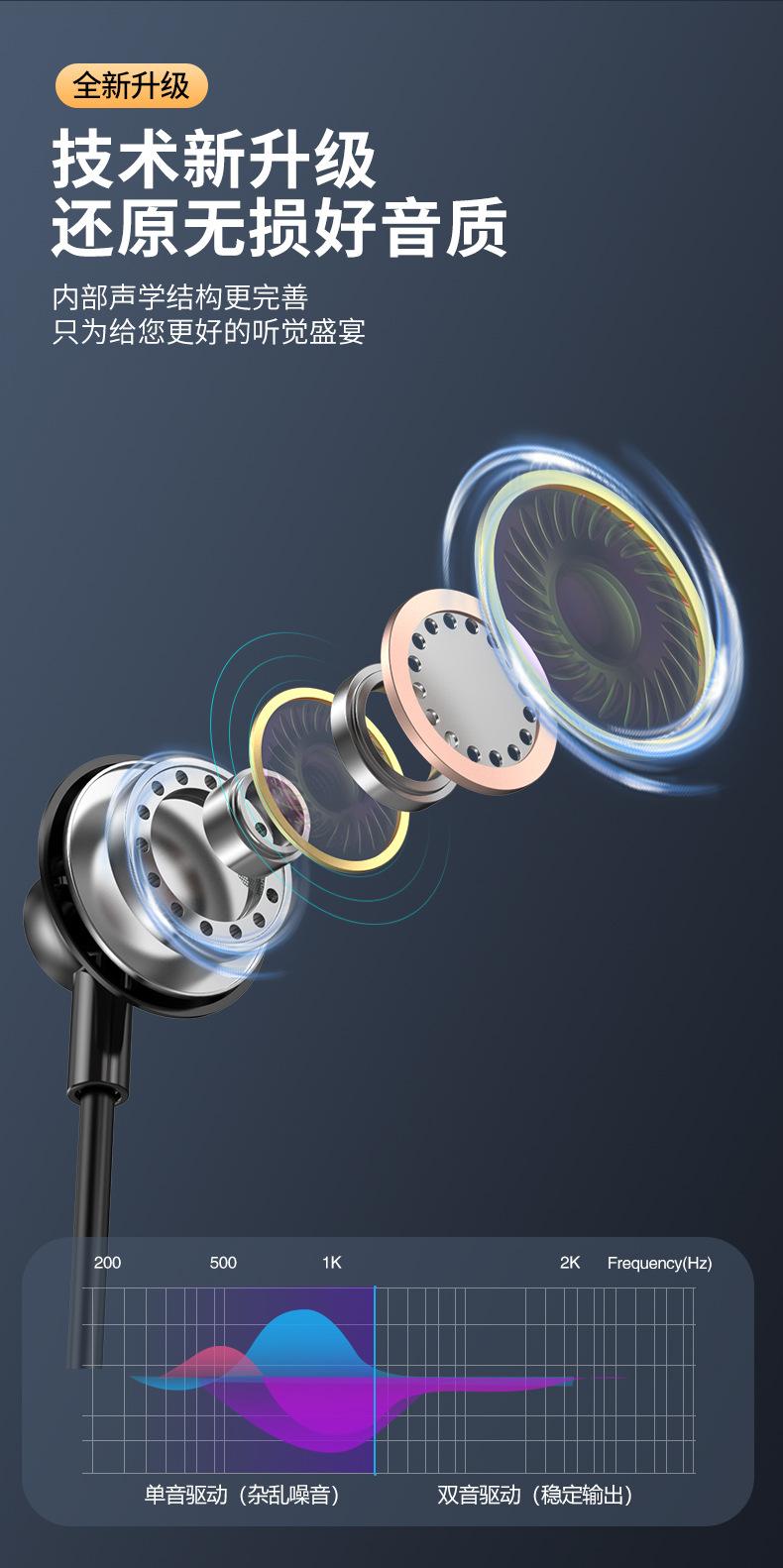 Ambos modelos de auriculares de doble clavija utilizan anillos de cobre, altavoces dentro de la cavidad de 13.5 MM para una calidad de sonido de alta fidelidad, y el micrófono utiliza una cabeza de micrófono enchufable para una captación de sonido más clara y sensible.