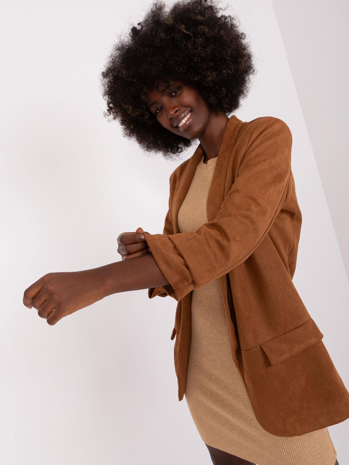 Ropa de mujer de Amazon transfronteriza 2023 nueva moda europea y americana cárdigan con solapa color liso manga tres cuartos chaqueta de traje de gamuza