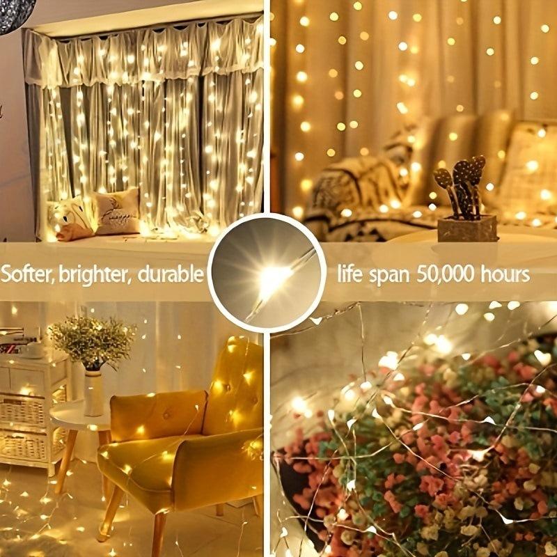 Como uma lâmpada LED decorativa, as luzes de cortina são muito práticas e podem ser combinadas com outros dispositivos. Basicamente, qualquer espaço pequeno pode ser decorado com um sentimento romântico, desde que haja luzes de cortina.
