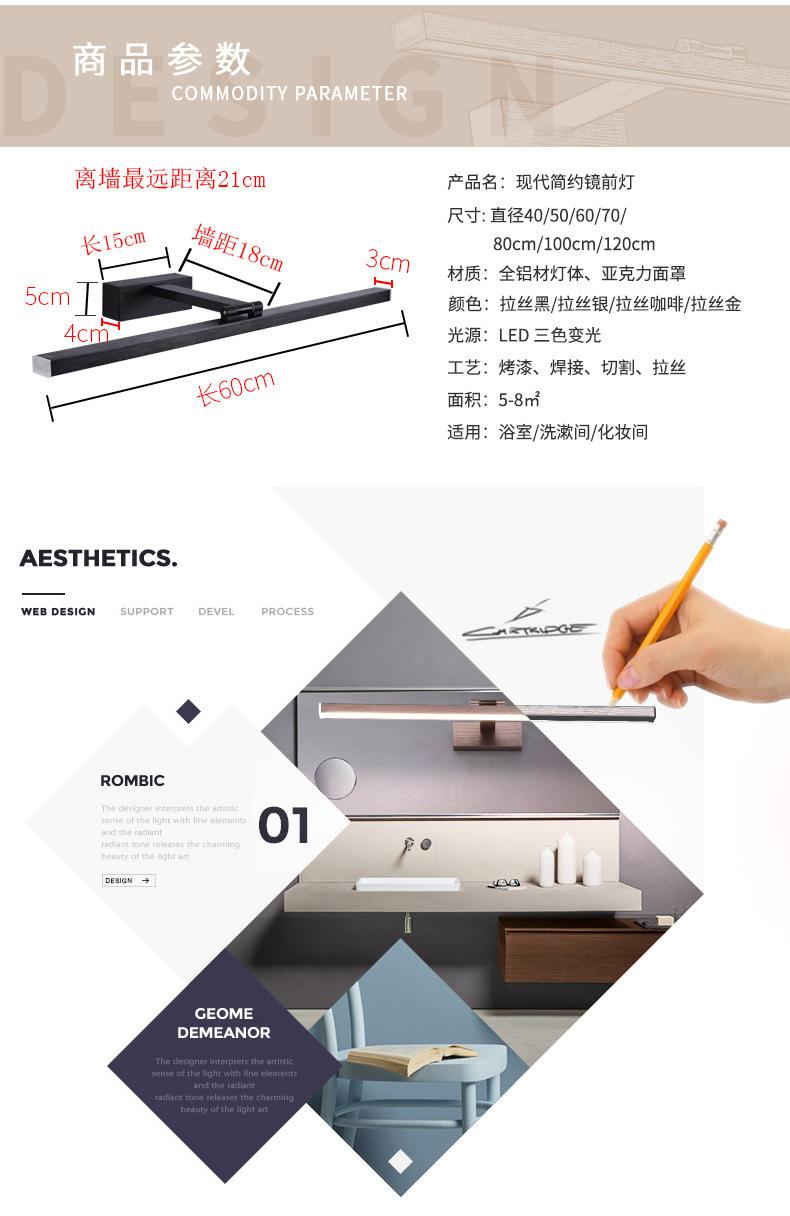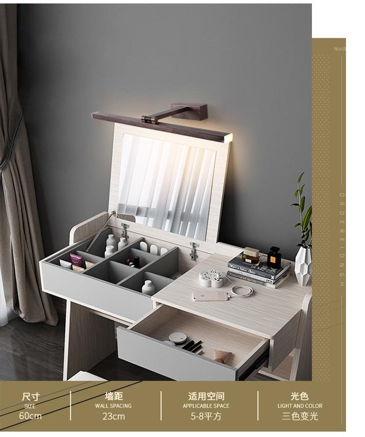 Este producto se envía con un modelo de armario con espejo de brazo largo, a una distancia de 18 cm de la pared. Si necesita un modelo de brazo corto, indíquelo. Se pueden personalizar la luz neutra y la atenuación tricolor. Para más información, contacte con el servicio de atención al cliente.