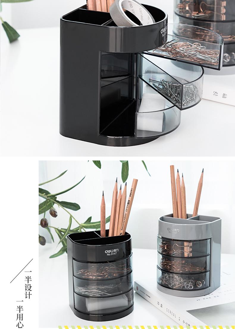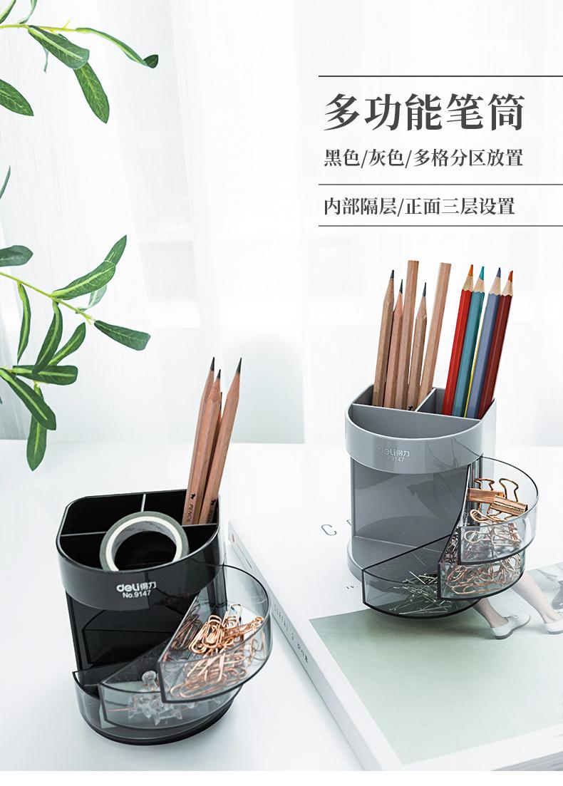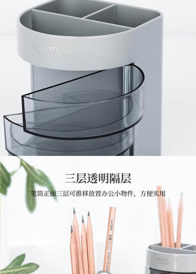 Compre Deli 9147 transparente suporte para caneta Escritório de negócios plástico armazenamento criativo três camadas multifuncional suporte para caneta armazenamento de objetos pequenos no atacado no Joom.pro