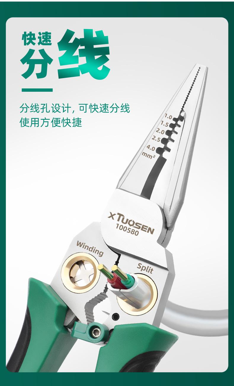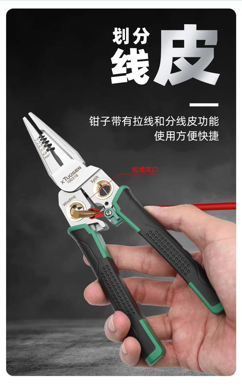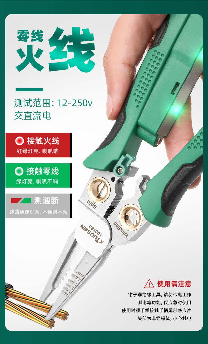 1. Este alicate tem a função de uma caneta testadora, que é usada por eletricistas para detectar se o aparelho elétrico testado está energizado e para distinguir o fio energizado do fio terra, se há curto-circuito, etc.