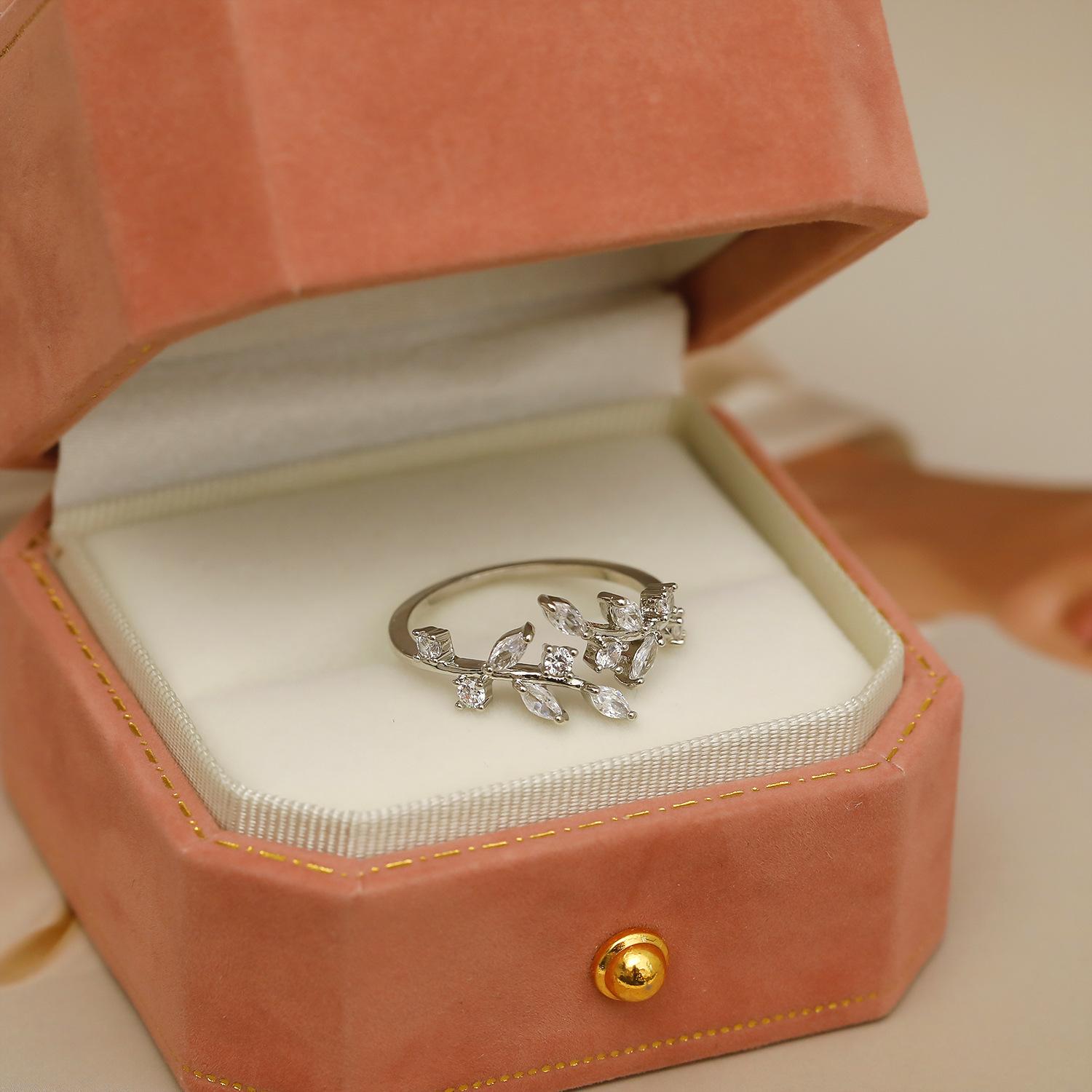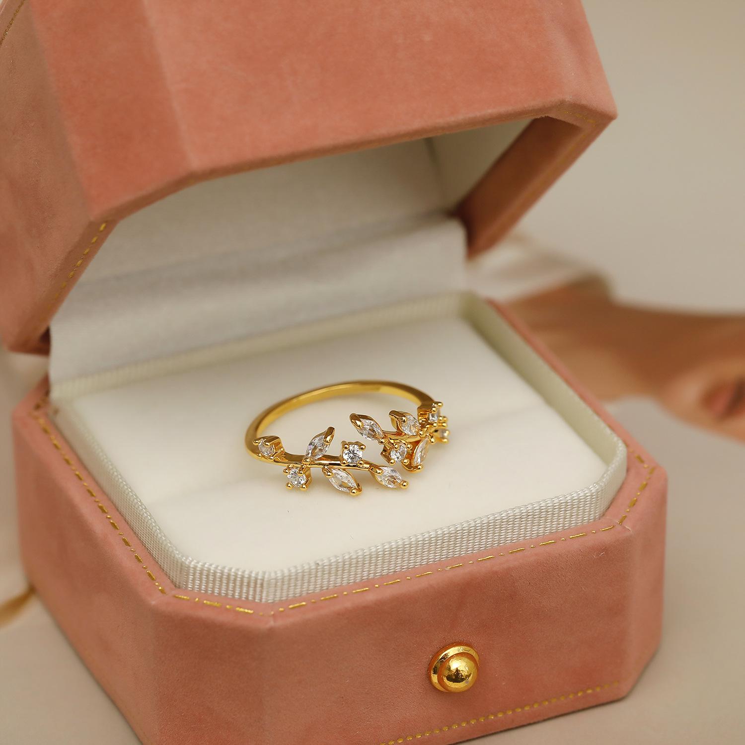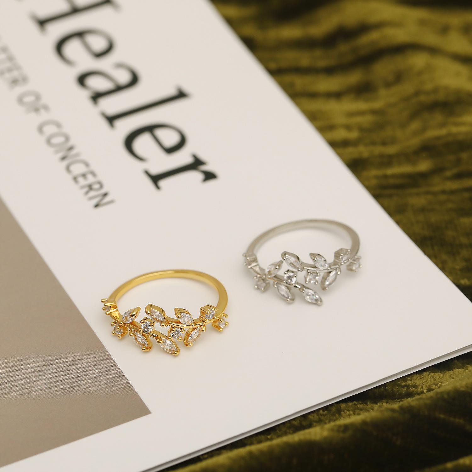 Nome do Produto: Anel Folha de Nicho Metálico Feminino Tendência Ins Moda Personalidade Luxo Leve Nicho Requintado Estilo Anel Aberto