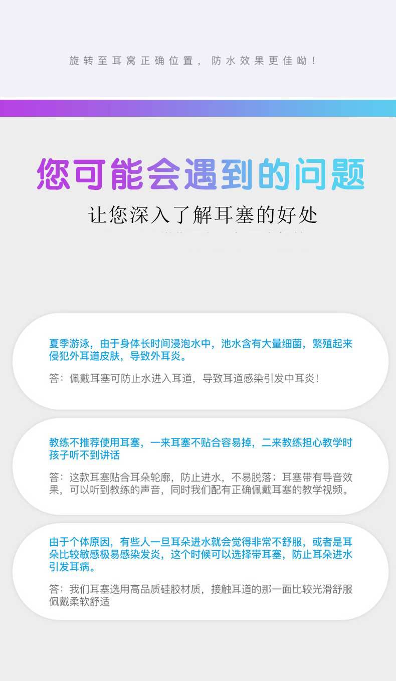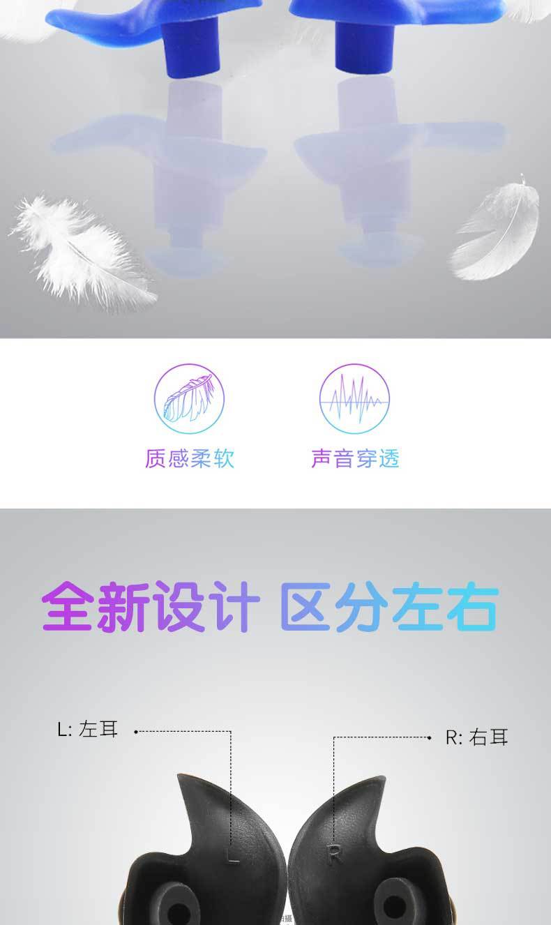 [Características]: Design ergonômico, formato 3D, à prova de som e à prova d'água, mais confortável para nadar; material de silicone, fácil e conveniente de usar, seguro, ecológico e não irritante