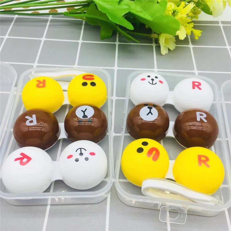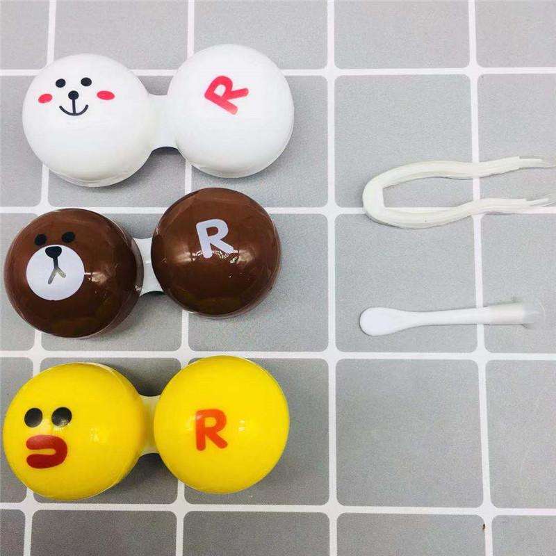 Caixa de desenho animado pp urso coelho frango beleza lente caixa de cuidados caixa de companheiro caixa de lentes de contato