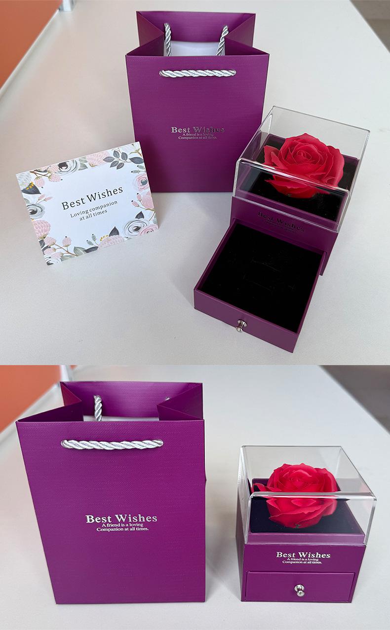 O preço inclui: caixa + bolsa + flores + cartão de felicitações