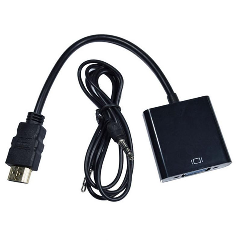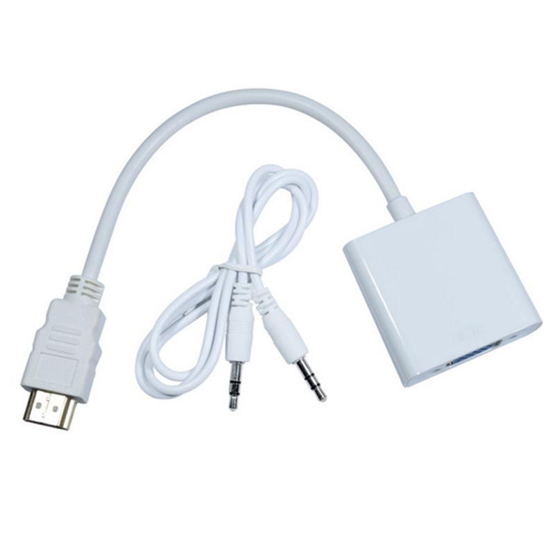 Este cabo adaptador HDMI para VGA suporta resolução HD de até 1080P e vem com uma interface de saída de áudio e um cabo de áudio