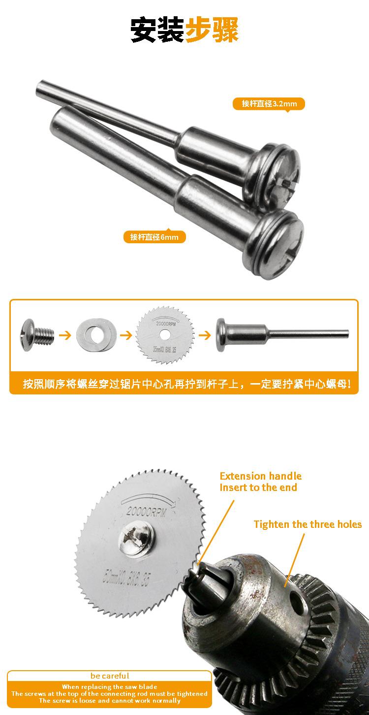 6 discos de corte de aço rápido + uma biela (diâmetro da biela 3,2 mm)
