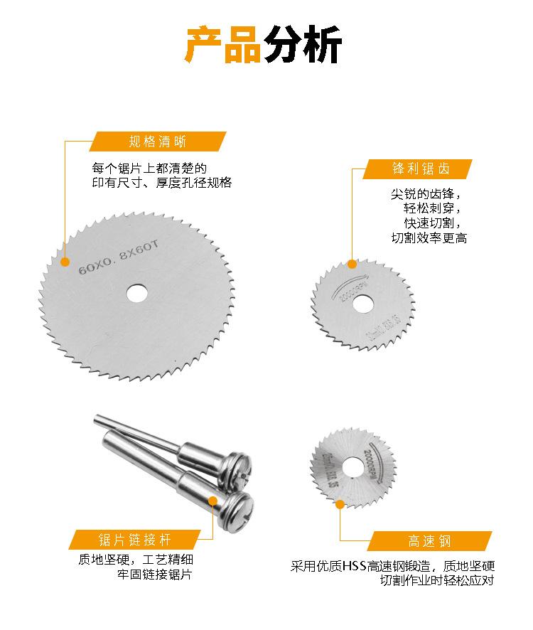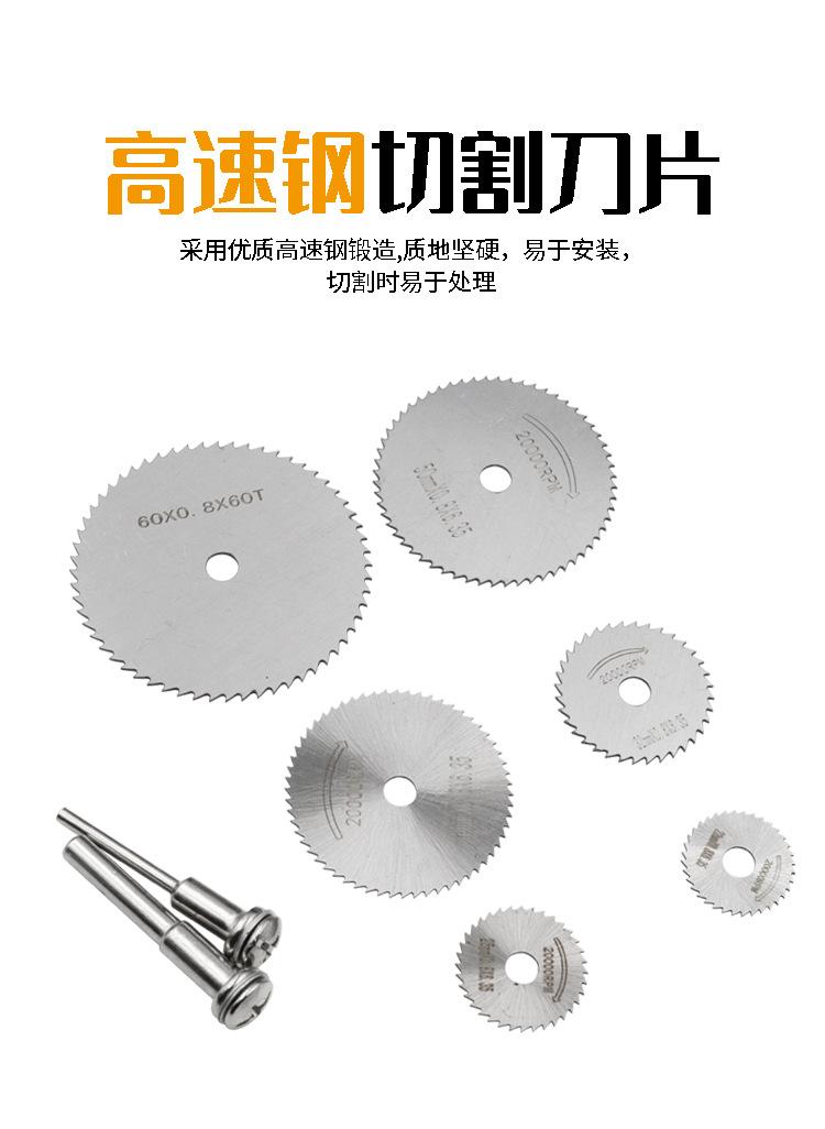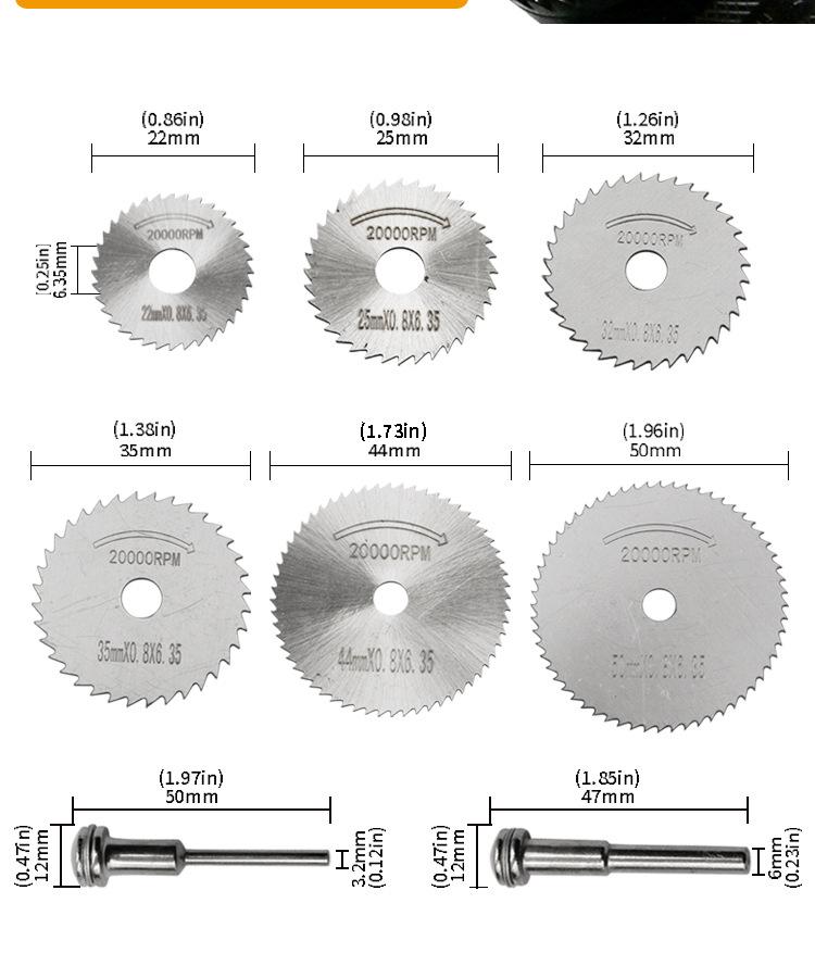 6 discos de corte de aço rápido + uma biela (diâmetro da biela 6 mm)