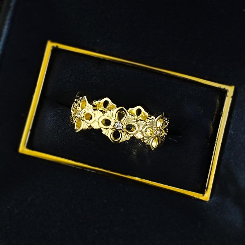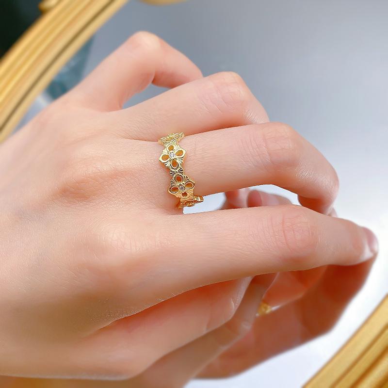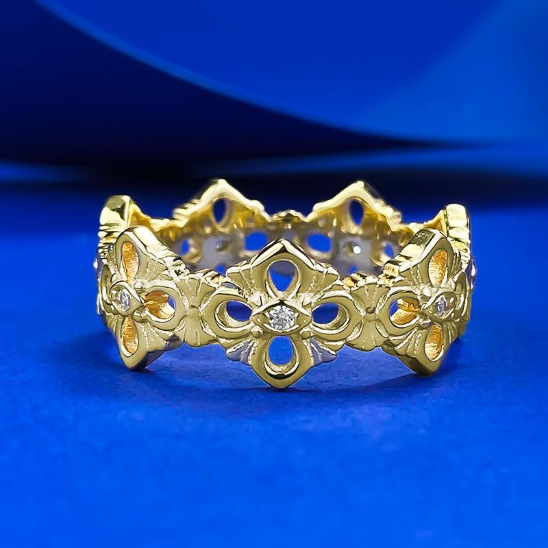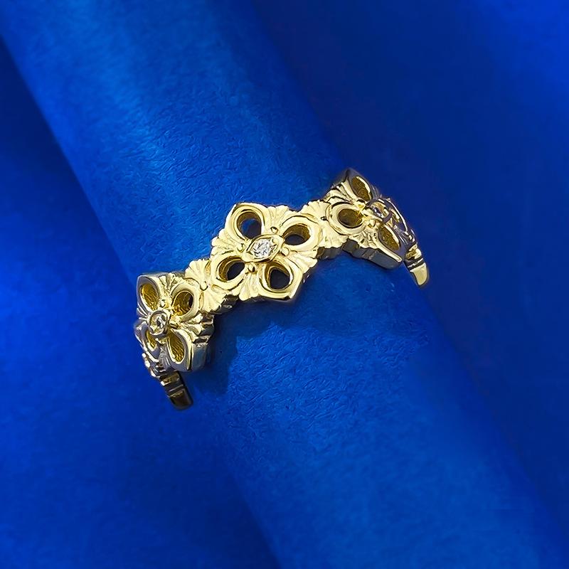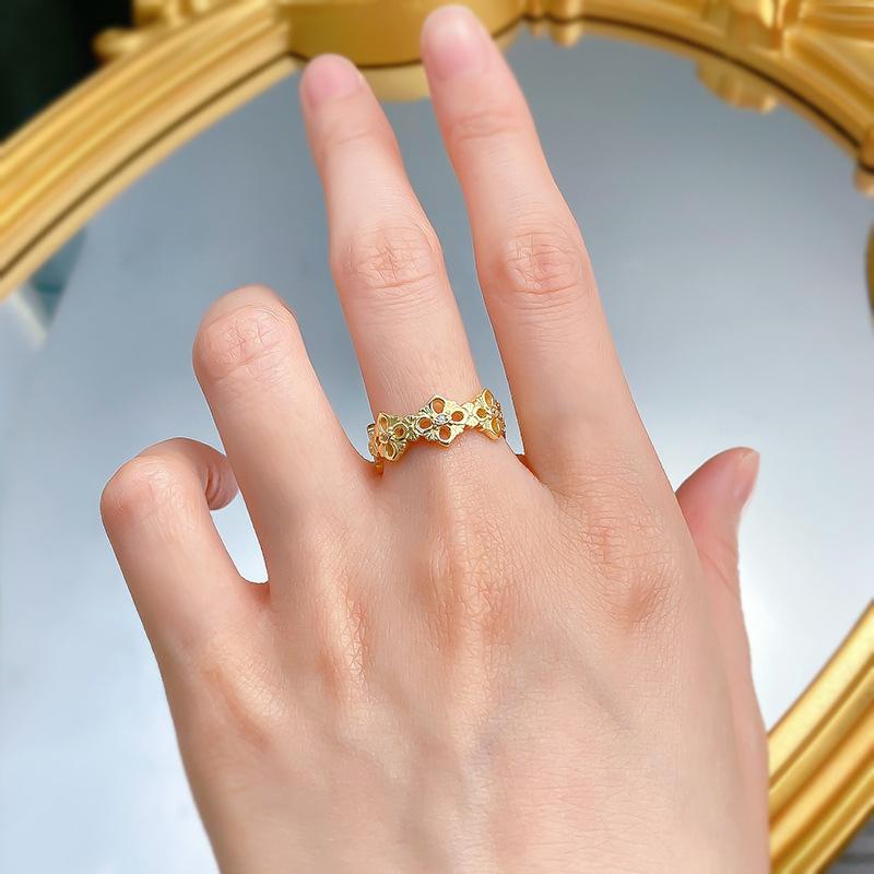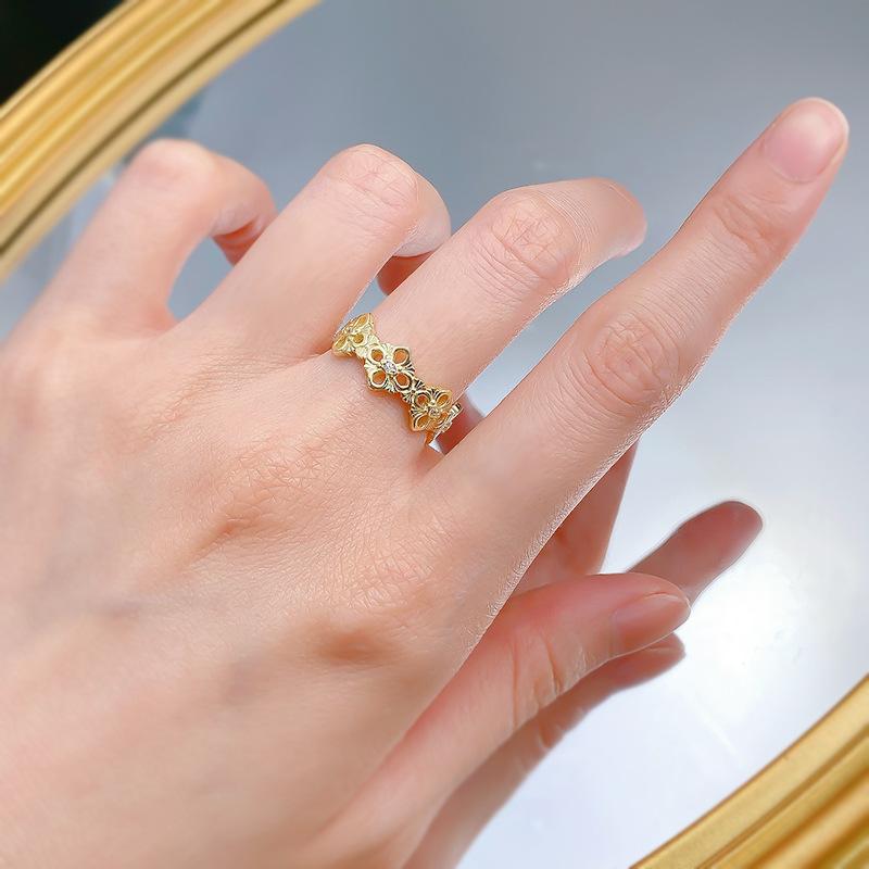 Mu Jing Jóias Nova Chegada Luz de Luxo 925 Prata Banhado A Ouro Pano Oco Padrão Anel Vintage Moda Jóias Mulheres