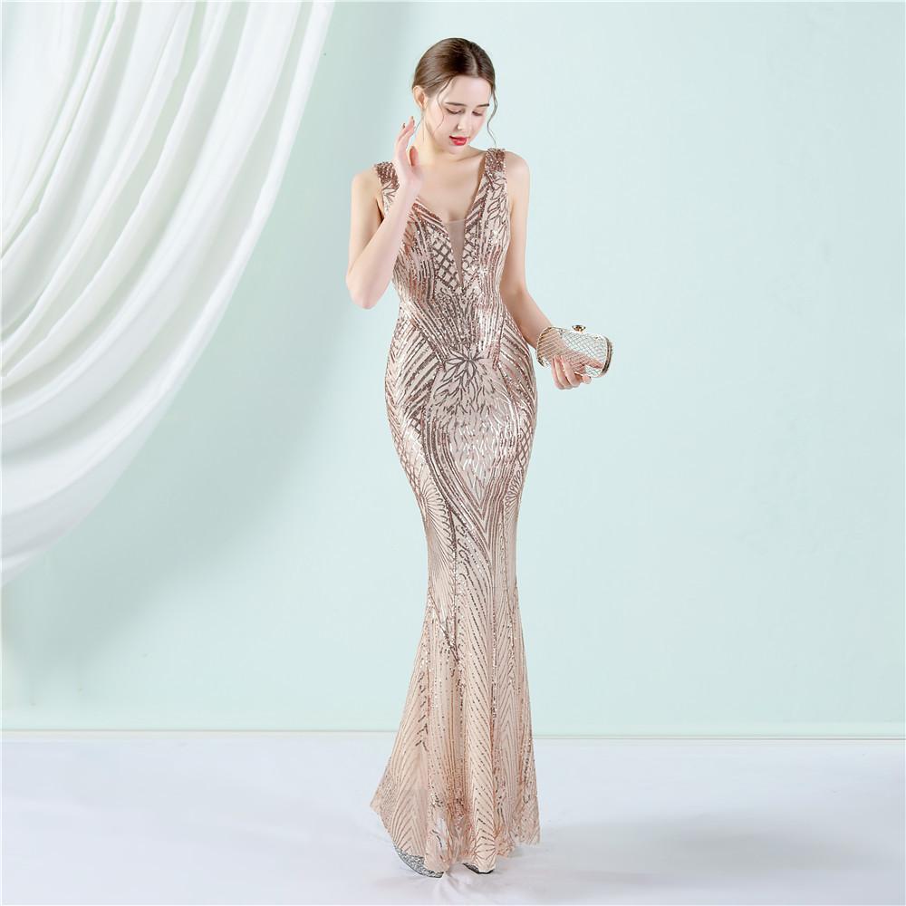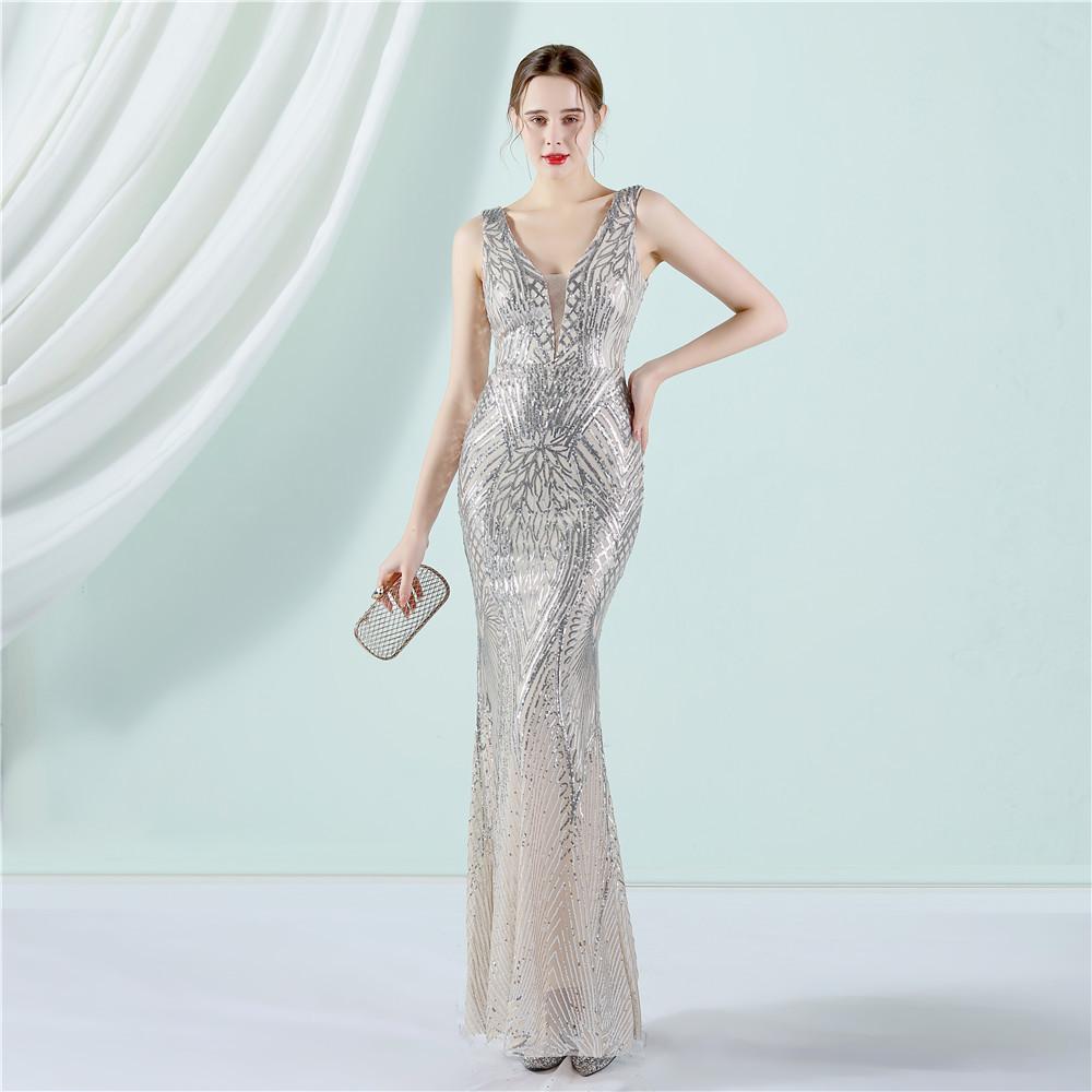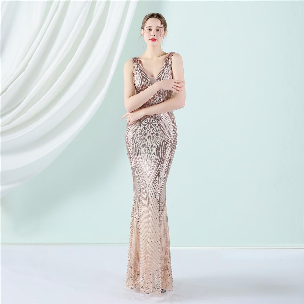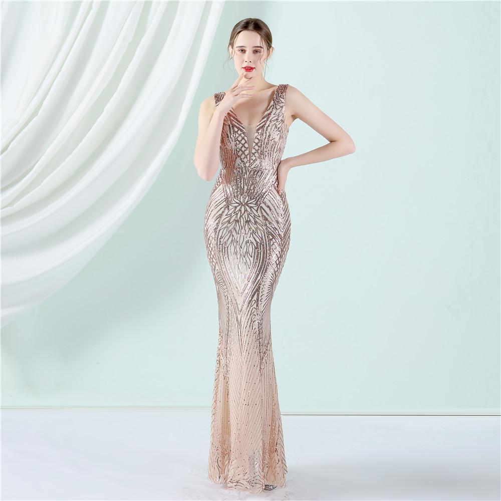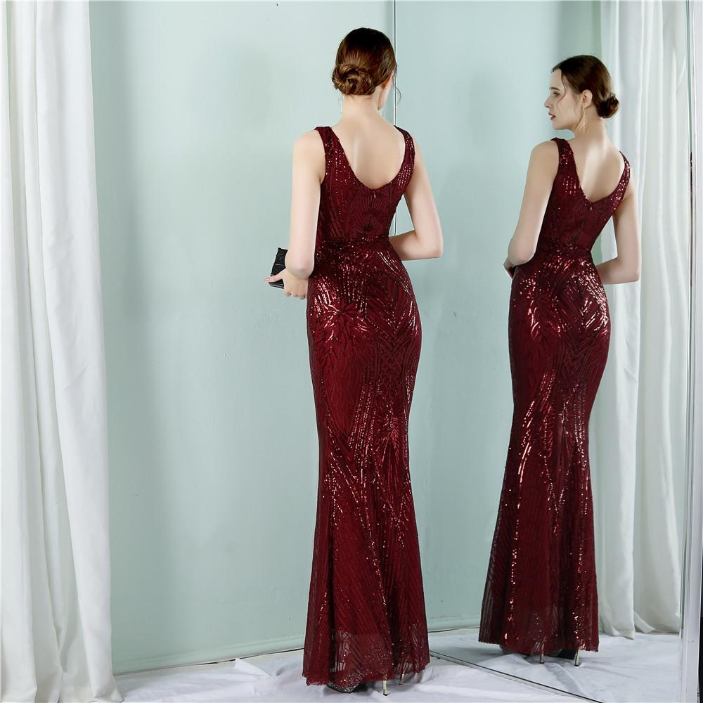 Posicionamento de contas de flores 2022 novo nobre banquete temperamento elegante longo lantejoulas aura rainha vermelho rabo de peixe fino
