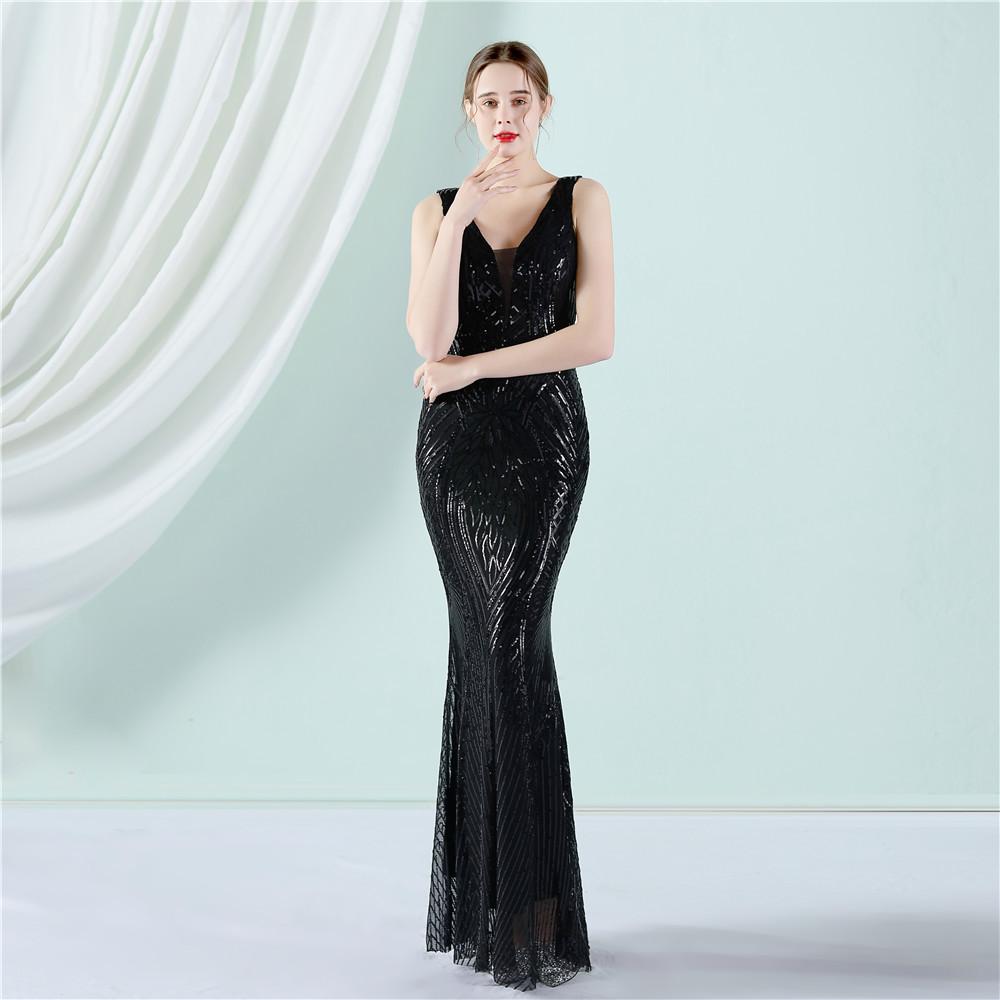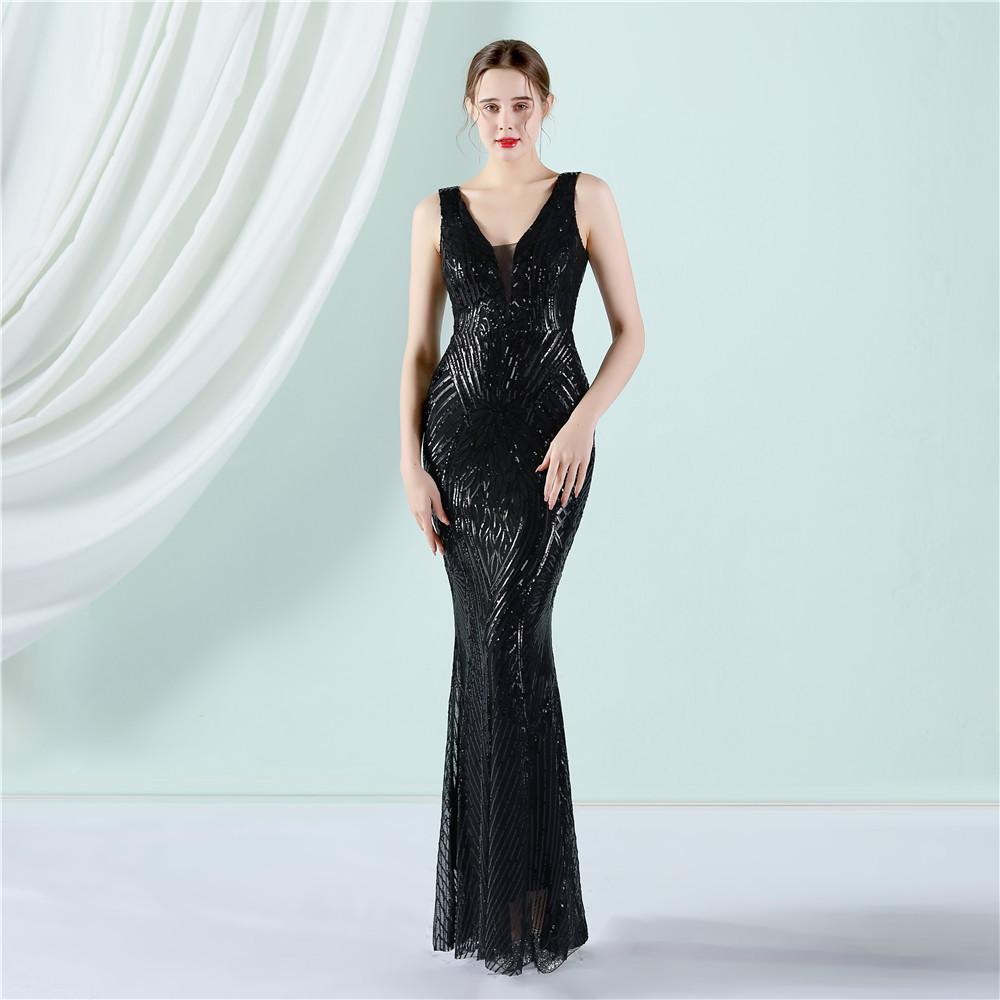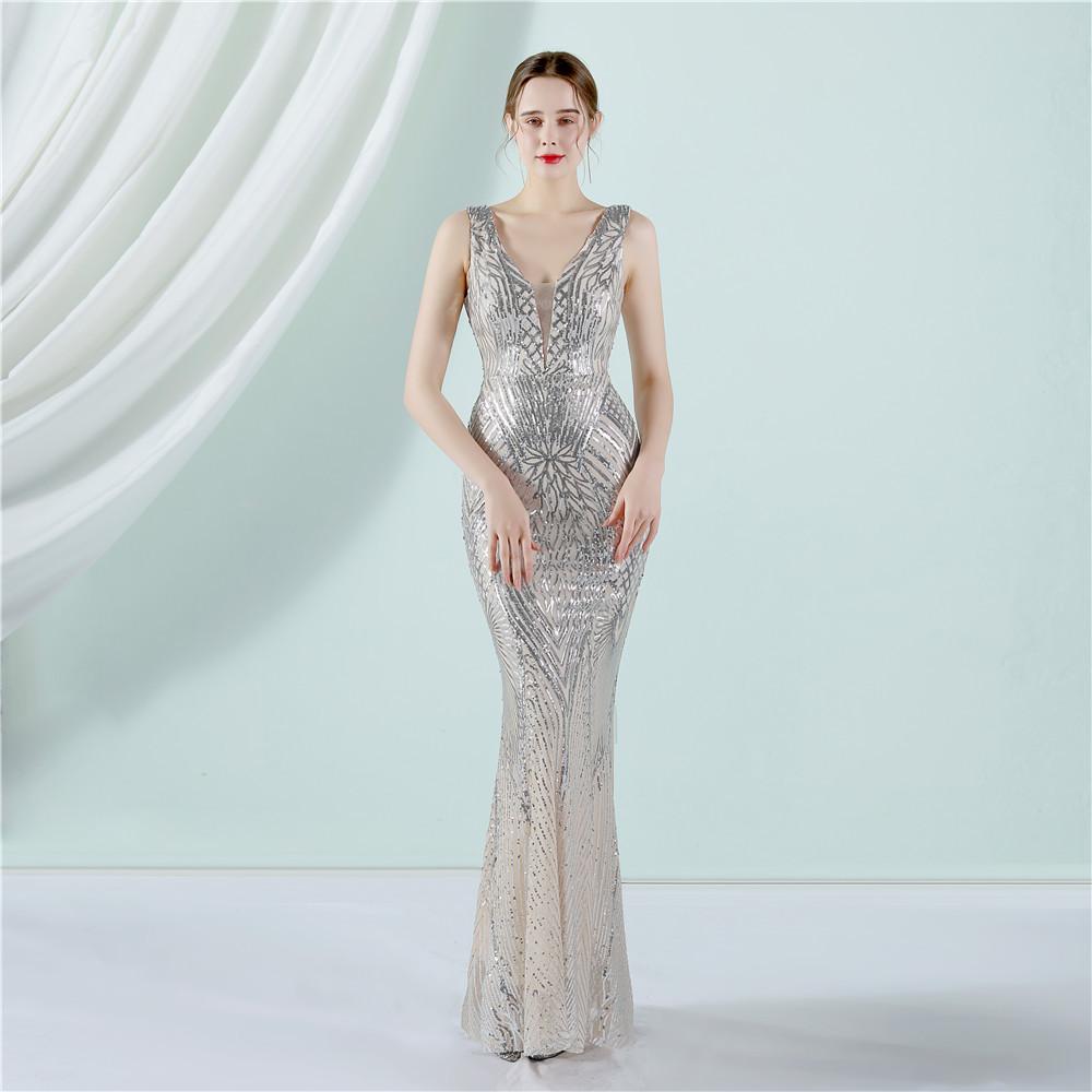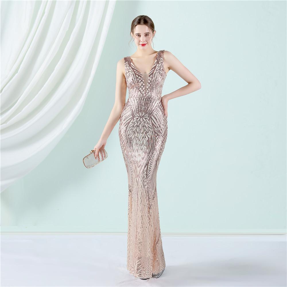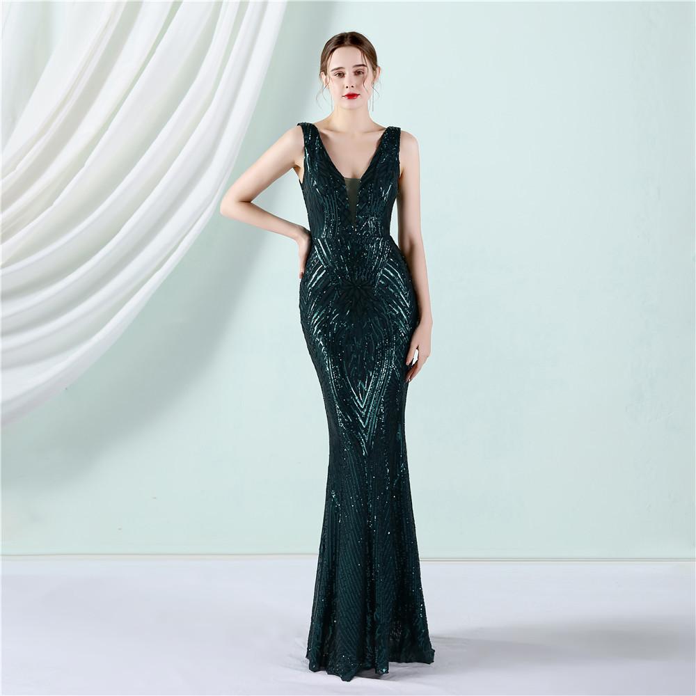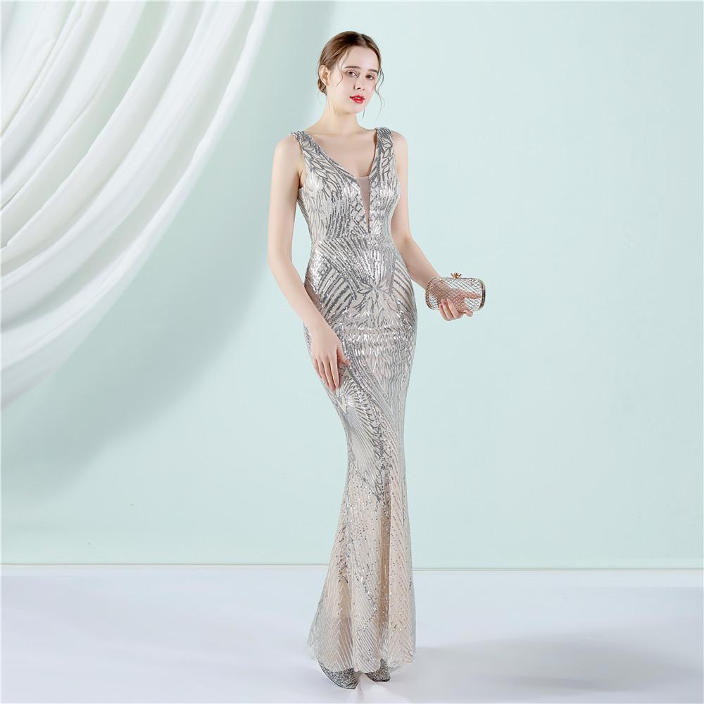 Posicionamento de contas de flores 2022 novo nobre banquete temperamento elegante longo lantejoulas aura rainha vermelho rabo de peixe fino