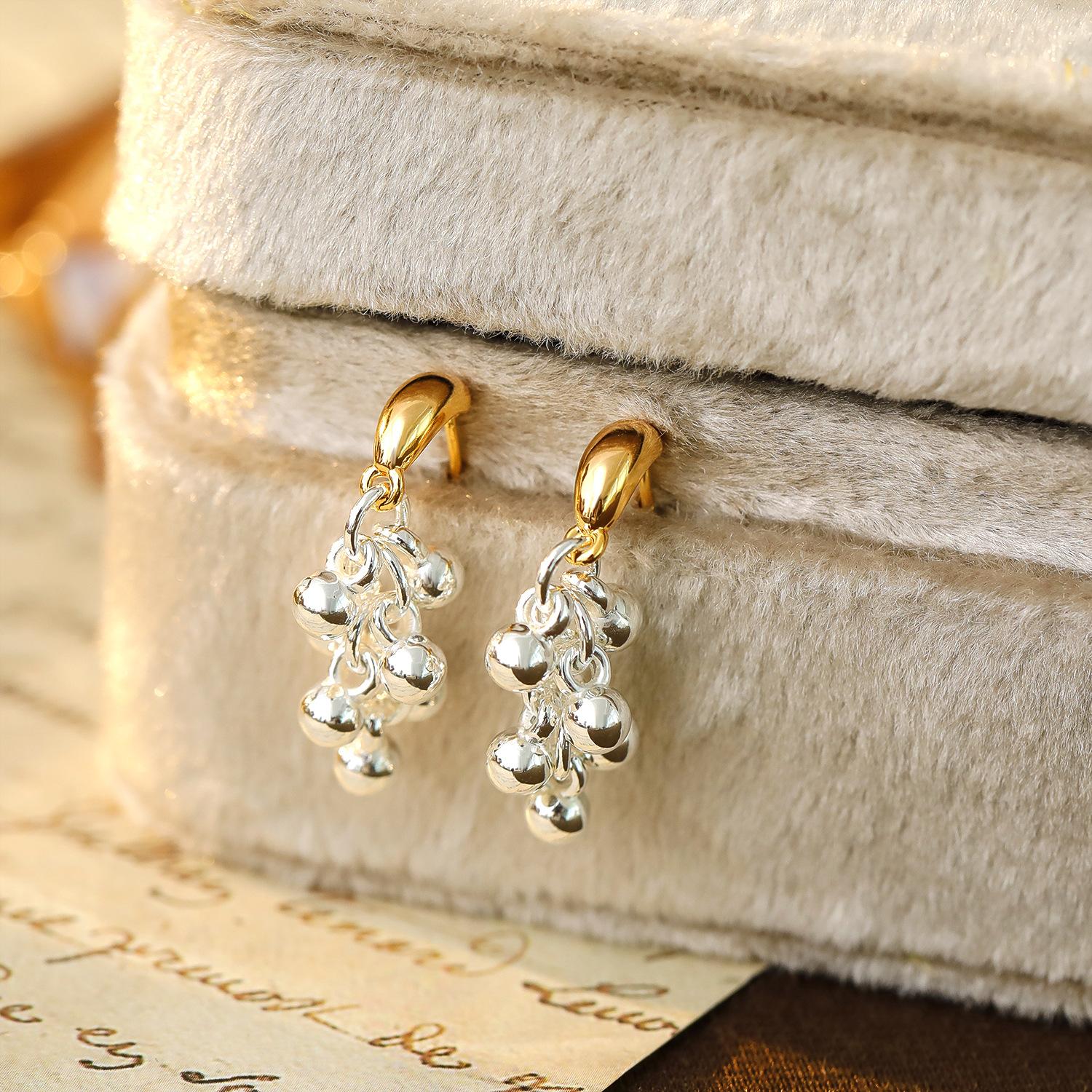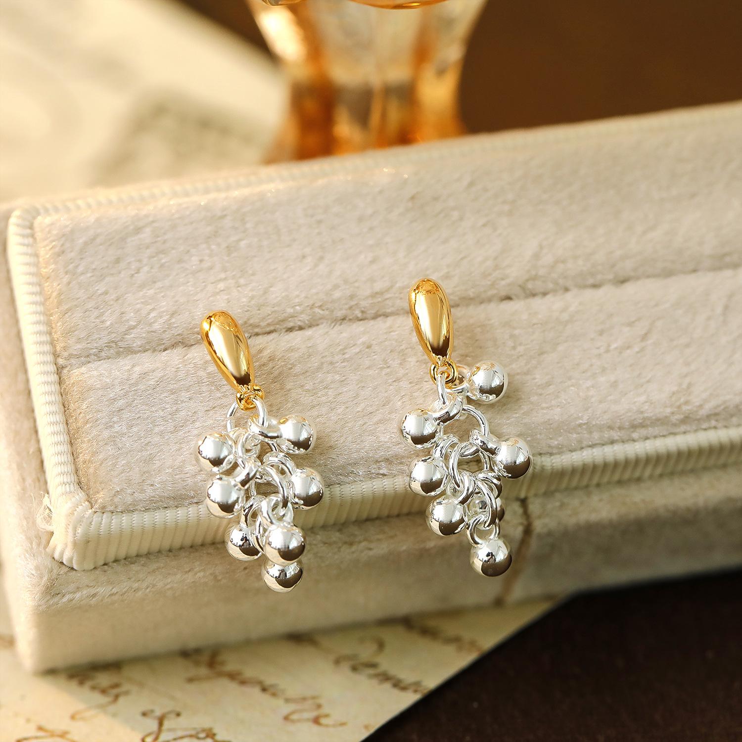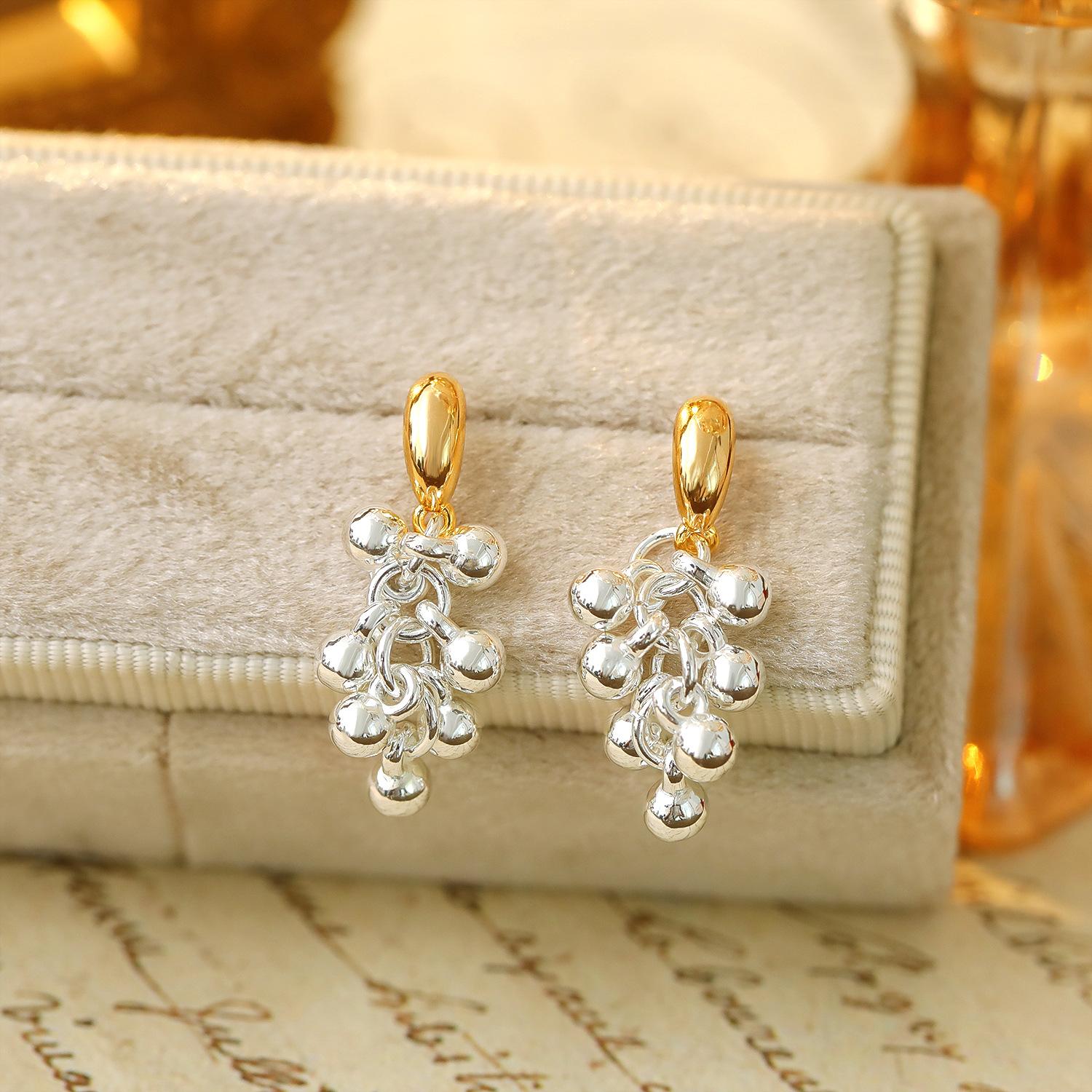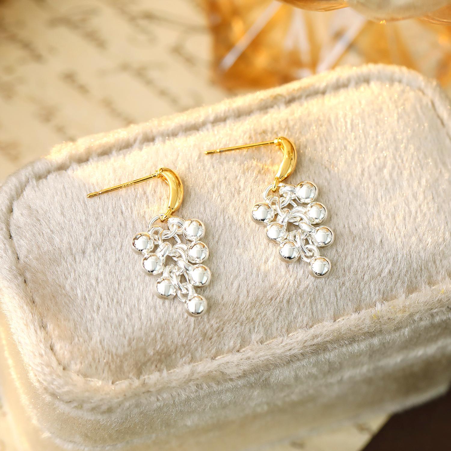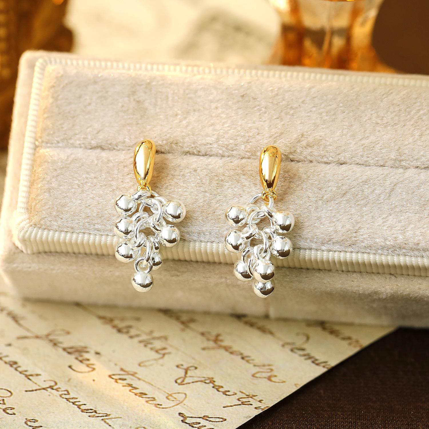 Nome do Produto: Brincos longos franceses de metal prateado com frutas e uvas