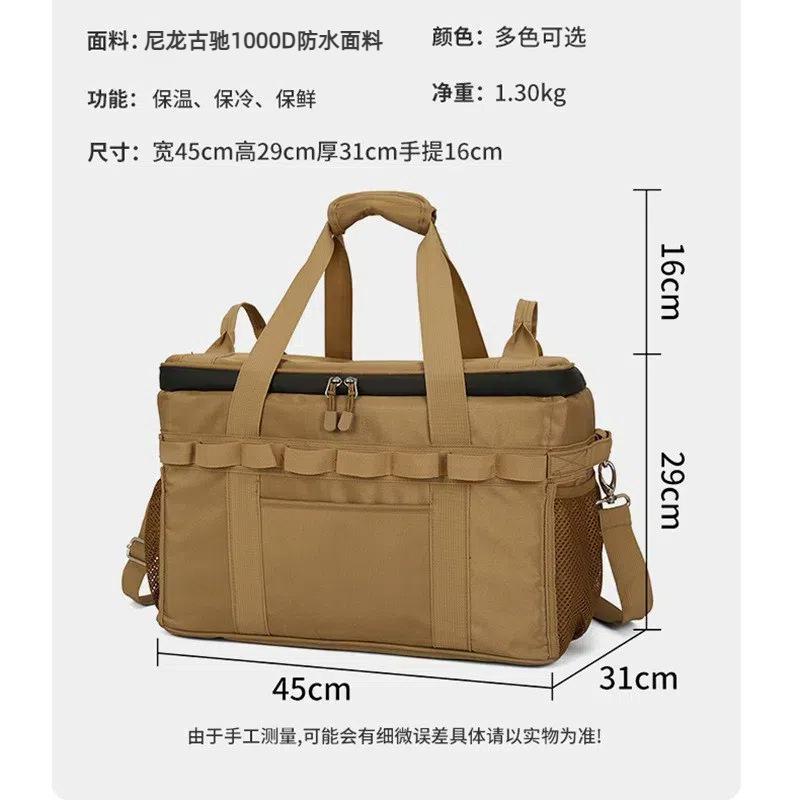 Esta bolsa de piquenique: a camada externa é feita de tecido Oxford impermeável 900D, a camada interna é à prova d'água e tem a função de manter o calor, o frio e o frescor, adequada para acampamento e armazenamento em piqueniques, fácil de transportar.