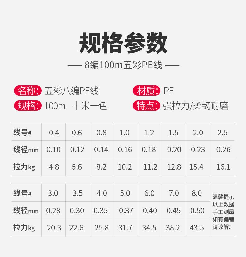Nombre del producto: Línea de pesca multicolor de 8 hebras 100 metros