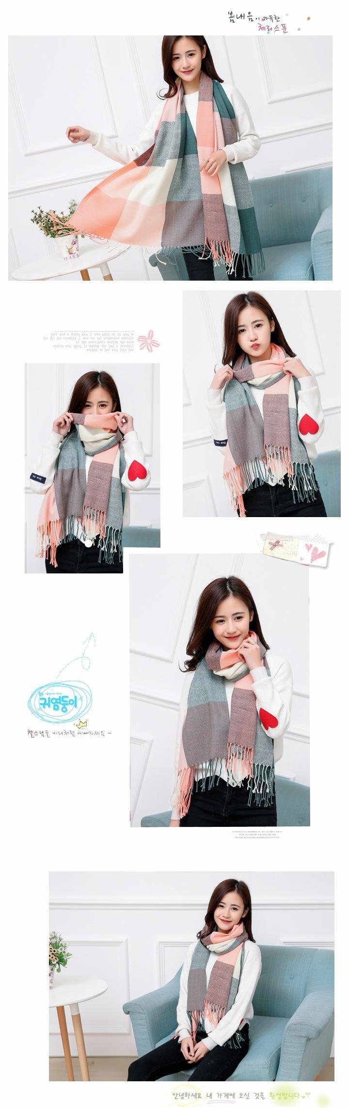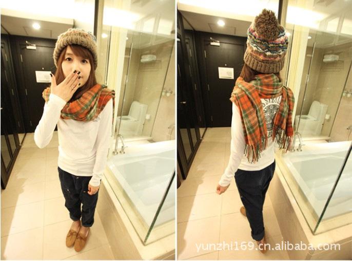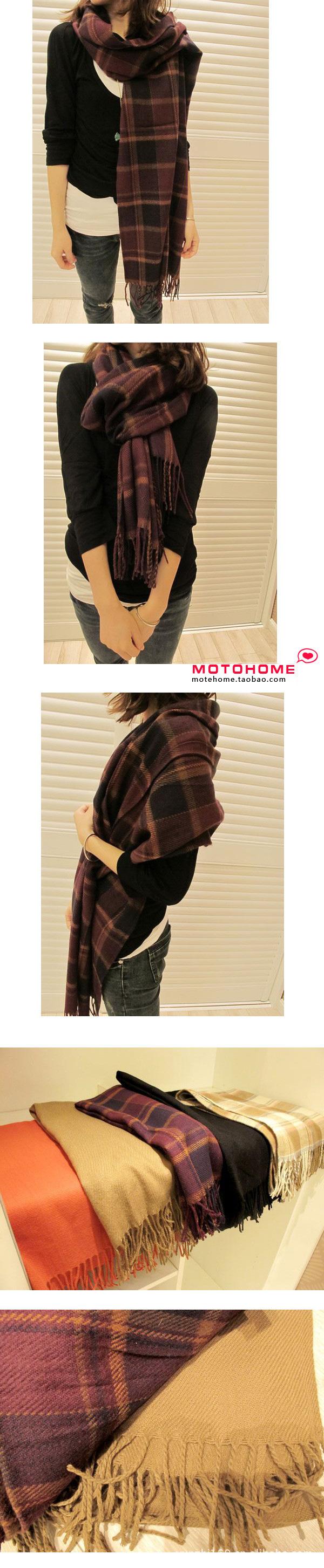 Estilo coreano Coreano outono e inverno senhoras cashmere lã cachecol xale dupla finalidade extra longo xadrez cachecol atacado (Cachecol xadrez de cashmere falso grande)