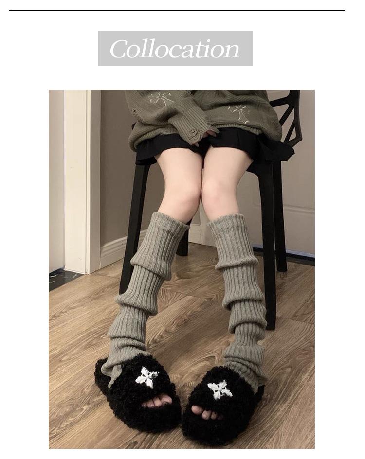 Compre Meias de malha de outono e inverno, subcultura, estilo universitário japonês, listra vertical, capa para perna, y2k, capa para pé branca fofa no atacado no Joom.pro