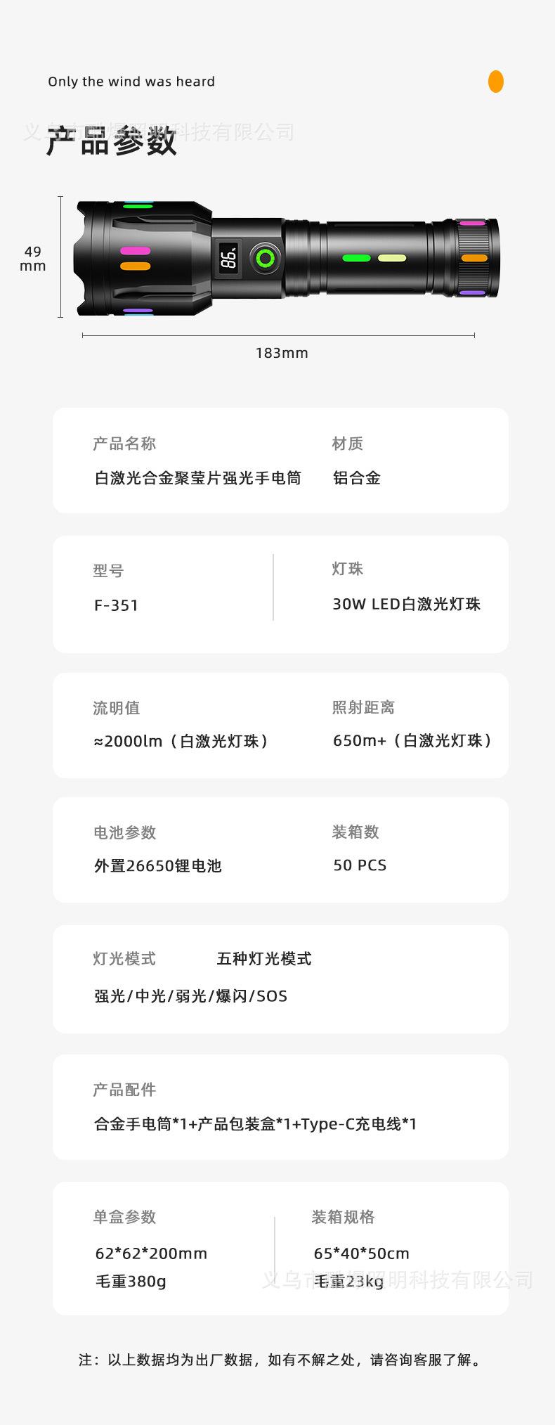 [O pacote inclui]: lanterna + cabo de carregamento + caixa branca