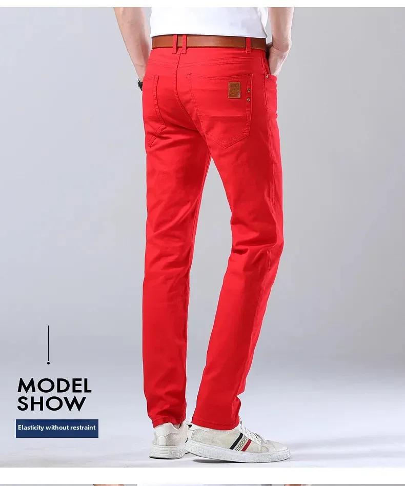 Compre Calças Casuais Masculinas Slim Reta Elástica Colorida Outono Nova Estilo Coreano Primavera e Outono 2025 Nova Marca da Moda Calças Compridas no atacado no Joom.pro