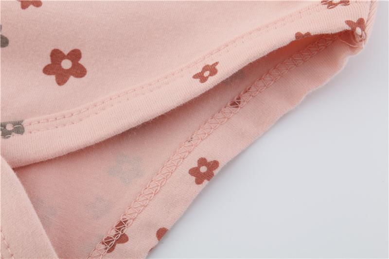 Análise do tecido: impressão ecológica, suave ao toque, adequada para bebês usarem próximo à pele.