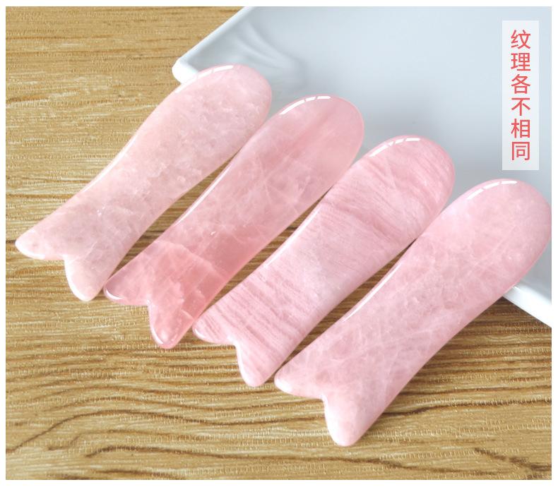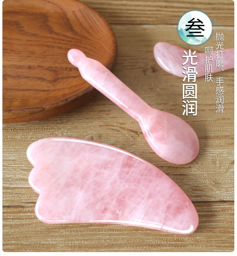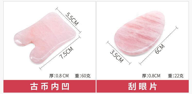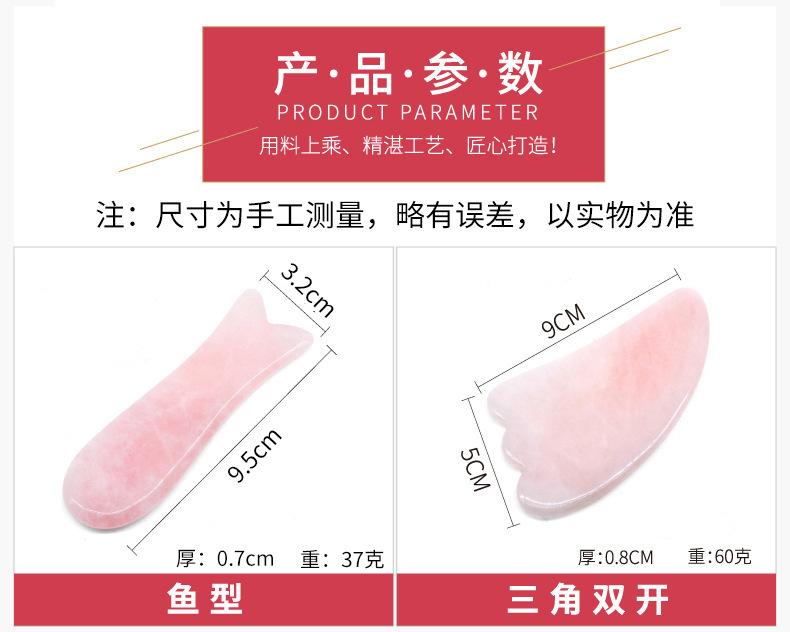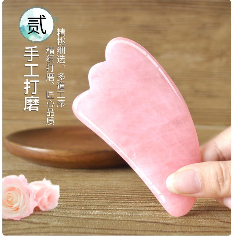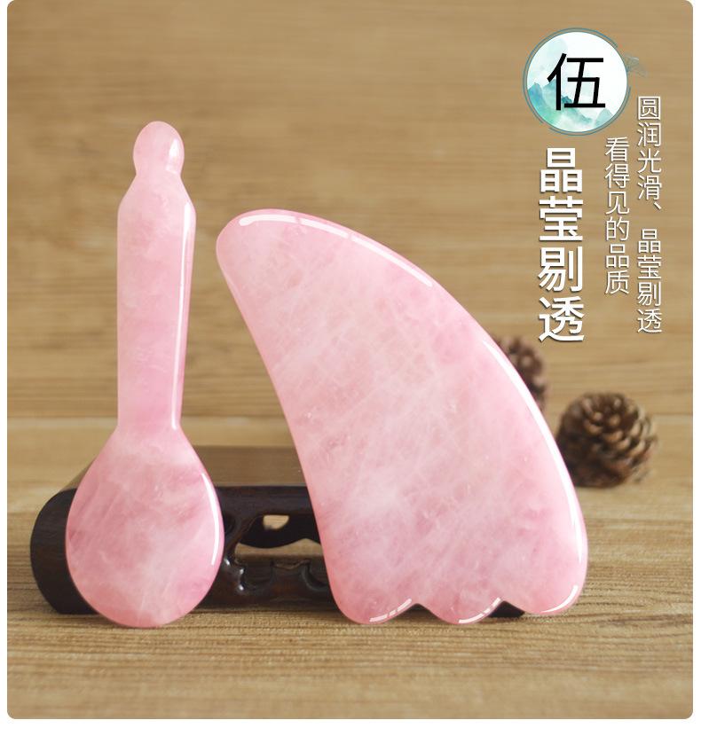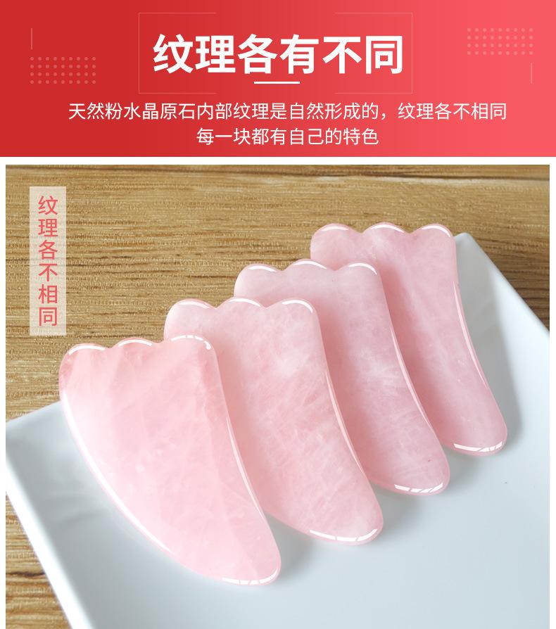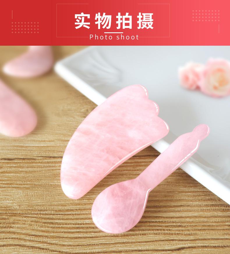 Observação:(Este jade de quartzo rosa é feito de matérias-primas naturais tradicionais de quartzo rosa e polido à mão. Como as matérias-primas naturais variam em tamanho, o tamanho de cada tábua de raspagem também é ligeiramente diferente. Existem muitas pedras falsas de quartzo rosa feitas de vidro no mercado agora. Cada um de seus produtos pode ser feito exatamente da mesma forma porque são feitos de moldes. O preço é baixo.)