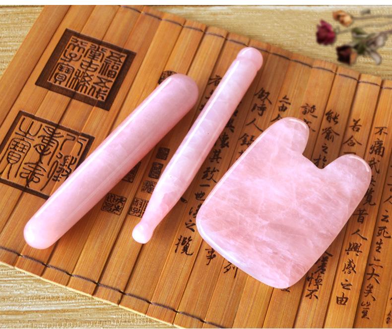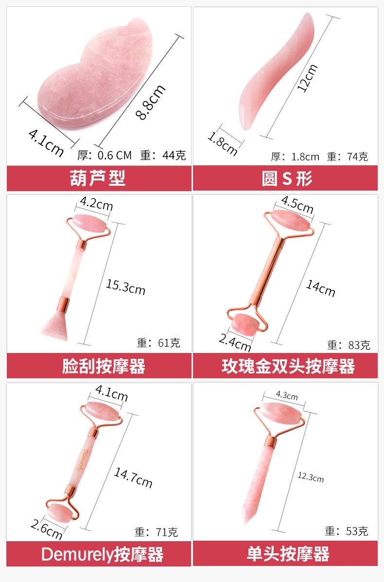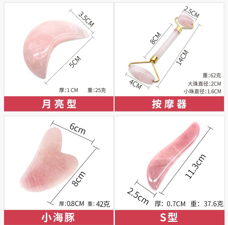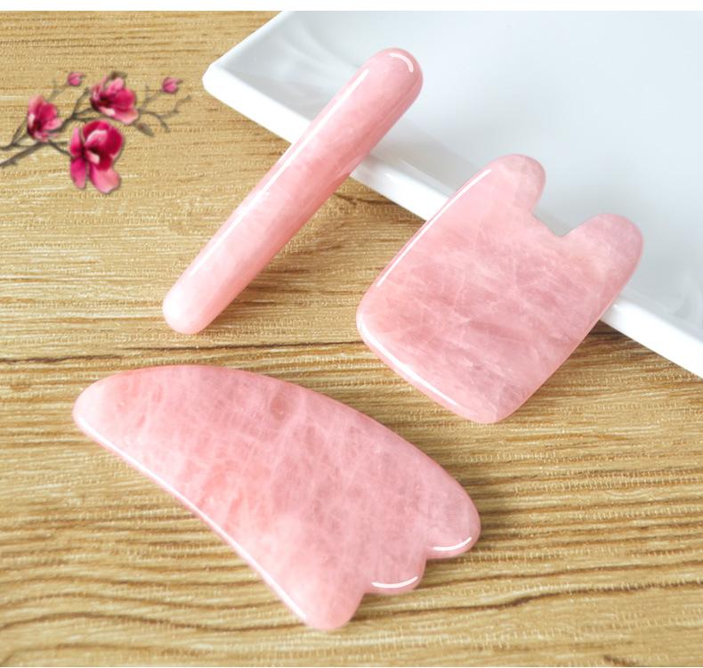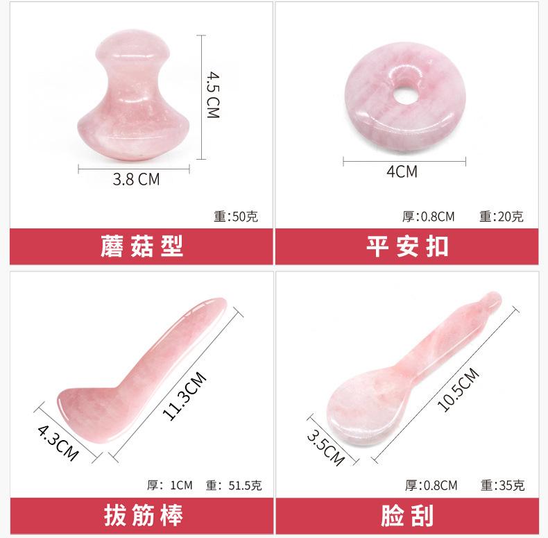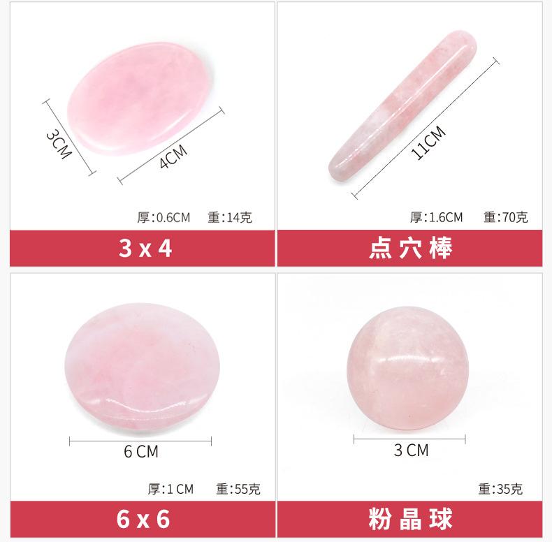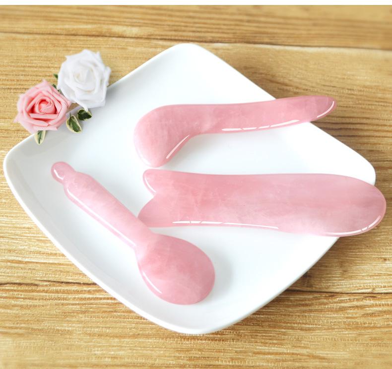 Observação:(Este jade de quartzo rosa é feito de matérias-primas naturais tradicionais de quartzo rosa e polido à mão. Como as matérias-primas naturais variam em tamanho, o tamanho de cada tábua de raspagem também é ligeiramente diferente. Existem muitas pedras falsas de quartzo rosa feitas de vidro no mercado agora. Cada um de seus produtos pode ser feito exatamente da mesma forma porque são feitos de moldes. O preço é baixo.)