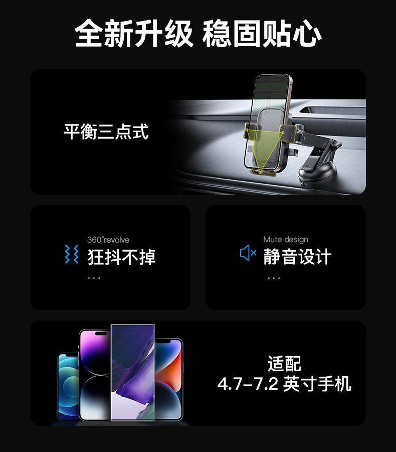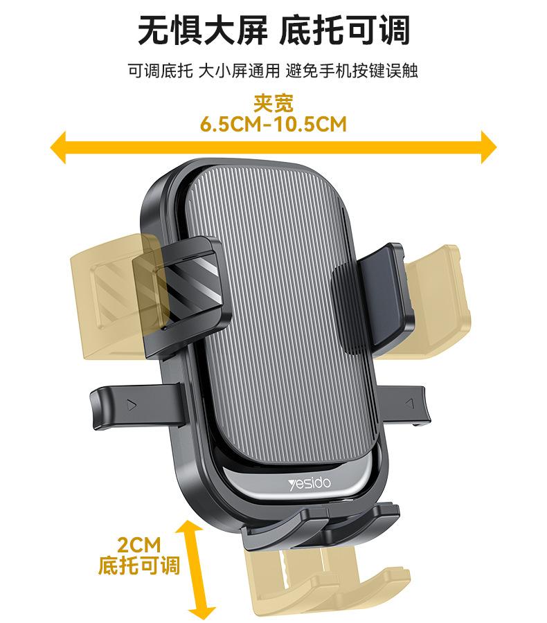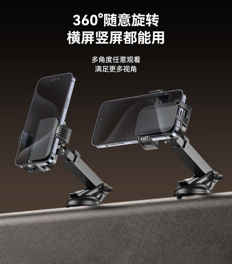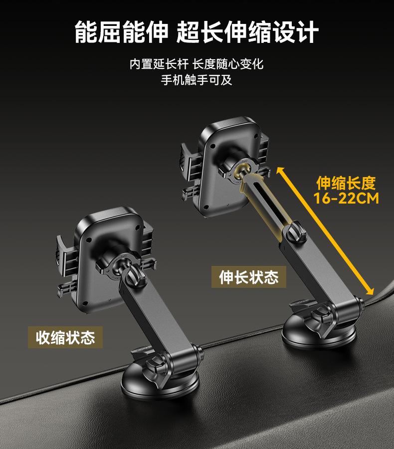 2. O clipe é projetado com pressão de mola. Pressione para dentro com as duas mãos ao mesmo tempo, o braço do grampo salta para fora, coloque o telefone, pressione a superfície levemente, o braço do grampo aperta, prende o telefone firmemente e não cai.