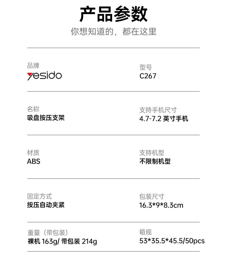 1. A base da ventosa é feita de ABS, que pode ser retraída e ajustada para atender a diferentes necessidades.
