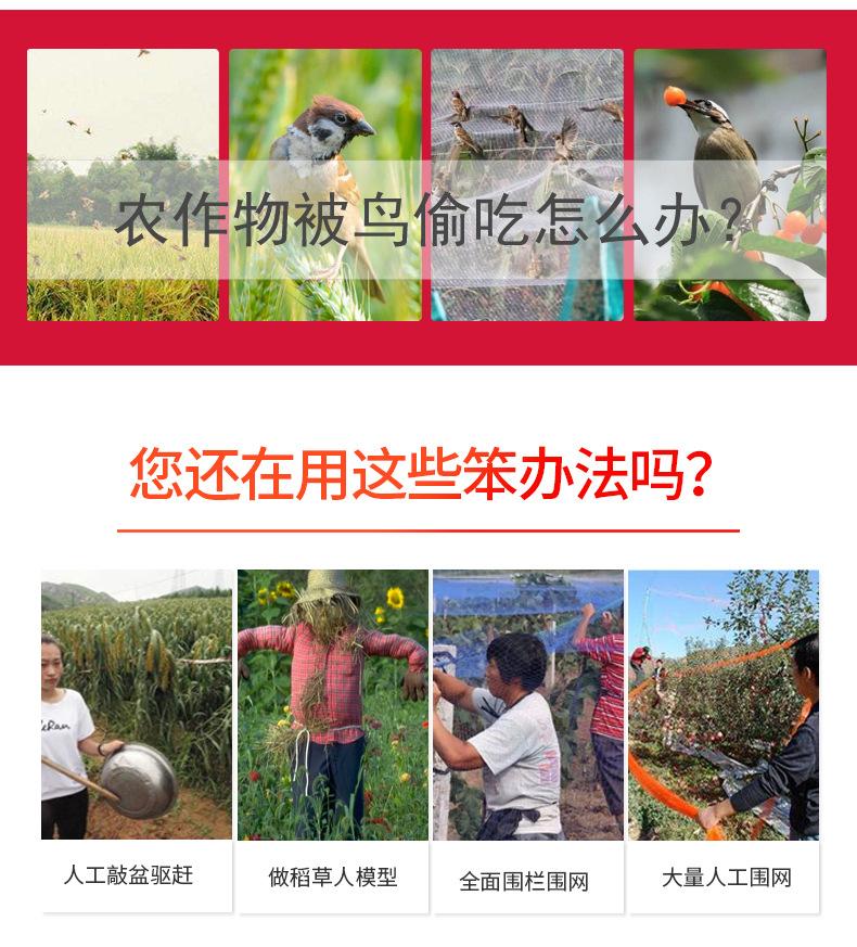 Do ponto de vista de uso, todos os meios de impedir que pássaros nocivos invadam seu território, colocando em risco os resultados do seu trabalho ou a segurança do equipamento, como fazendas, pomares, usinas de energia eólica, etc., são chamados de controle de aves.