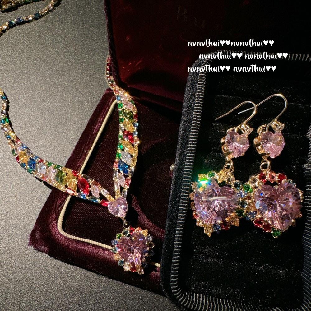3113yan fairy rainbow love diamond necklace + earrings ~ no box