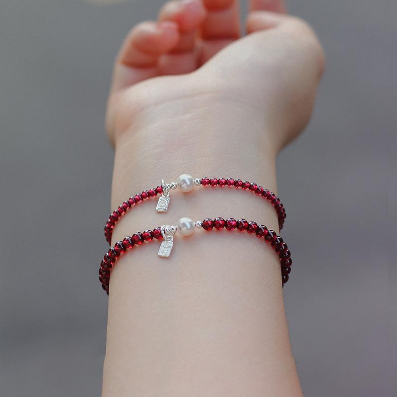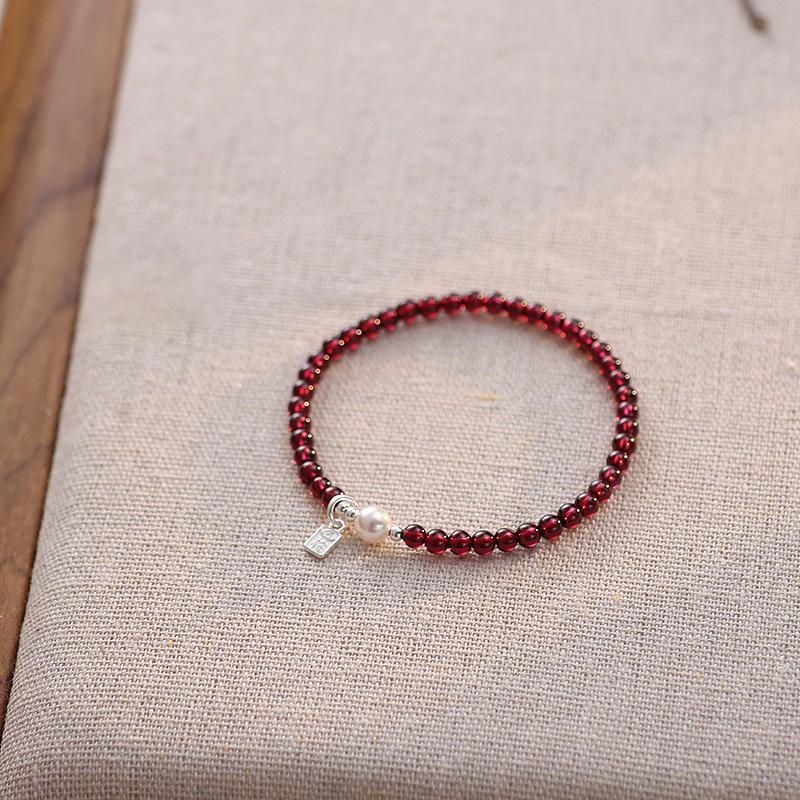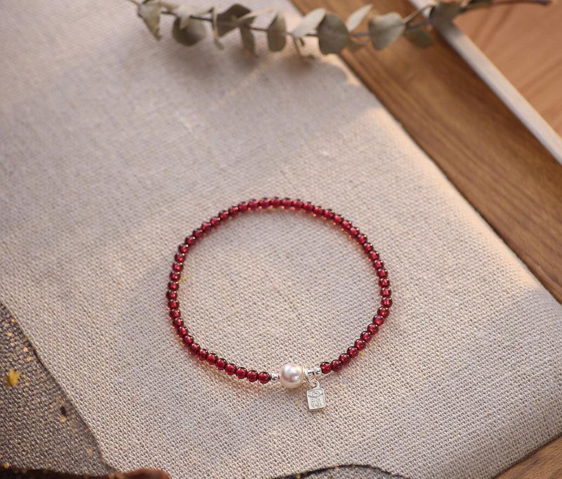 Granada natural + contas de concha + acessórios de prata 925
