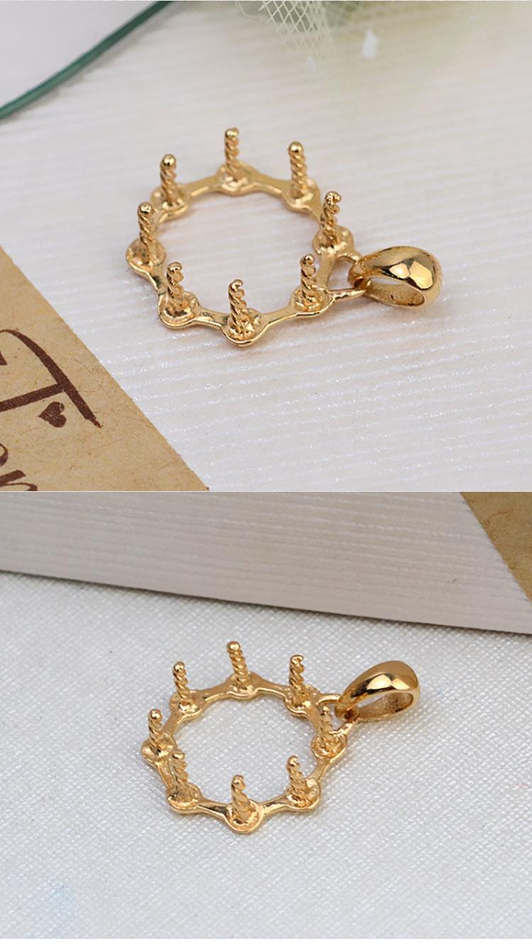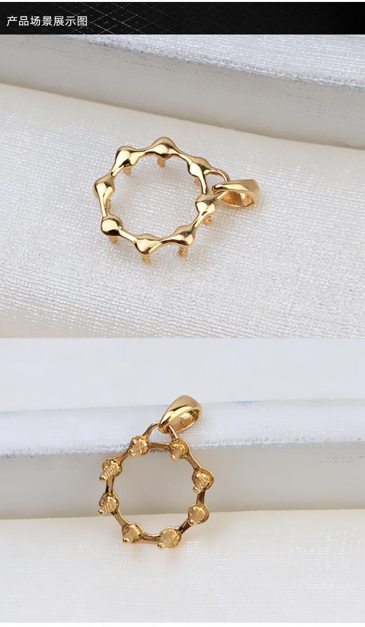 Suporte vazio para pingente de pérola pequena de ouro 18k, tamanho externo de cerca de 10,6*10,9 mm, adequado para contas redondas de 3,5-4 mm ou contas de pão,