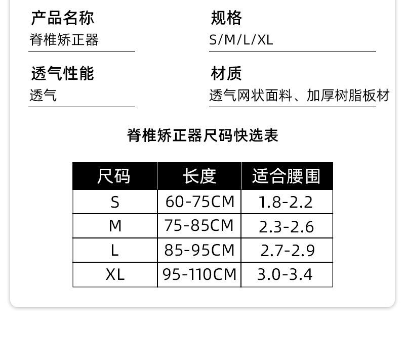 La estructura proporciona un soporte fiable y estable para la columna vertebral y limita eficazmente la columna torácica y lumbar.