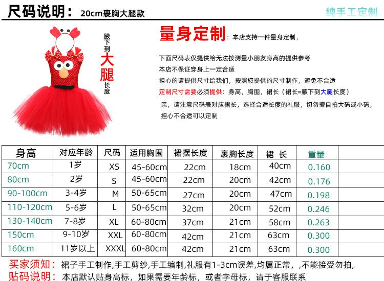 Elmo biscoito monstro cosplay traje halloween elf roupas infantis cross-border meninas vestido de malha artesanal saia