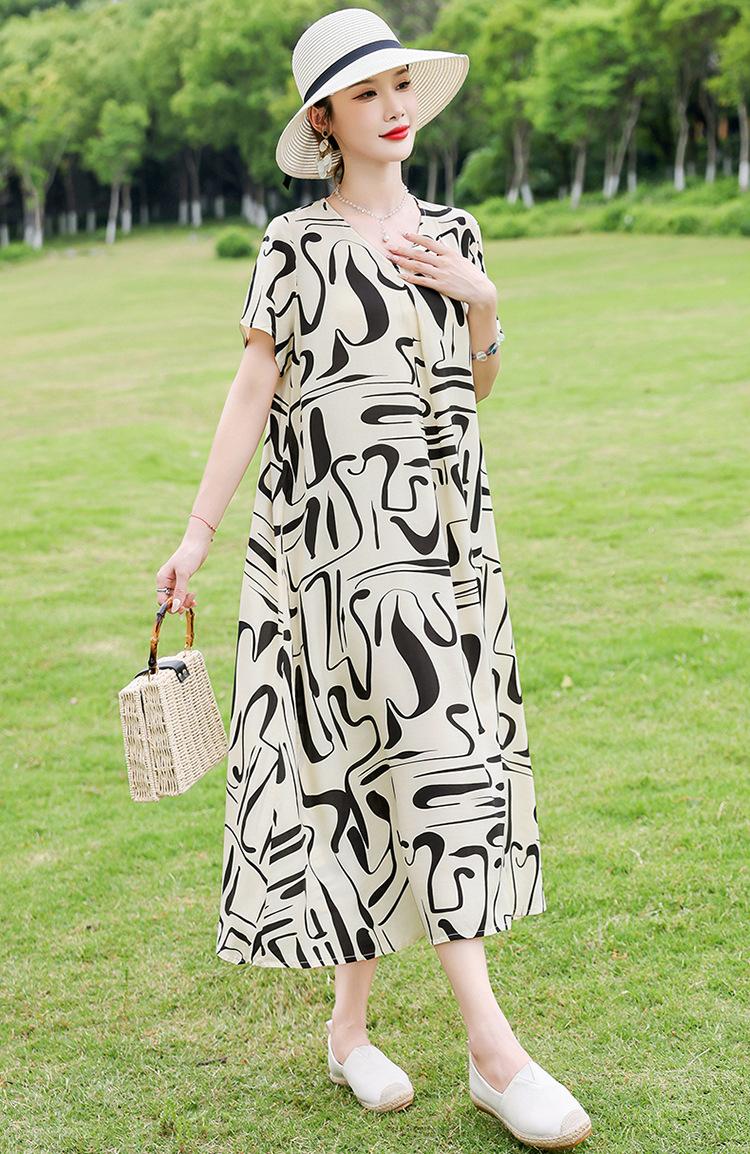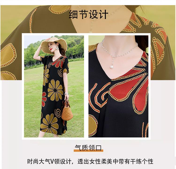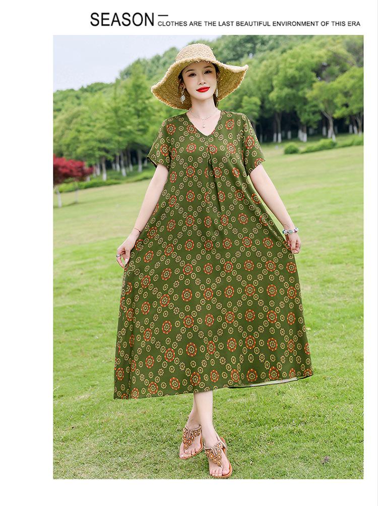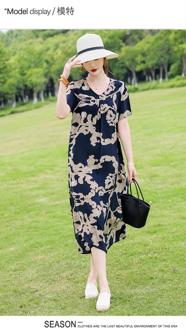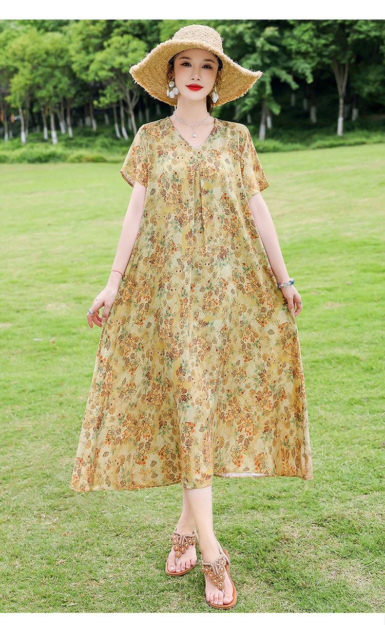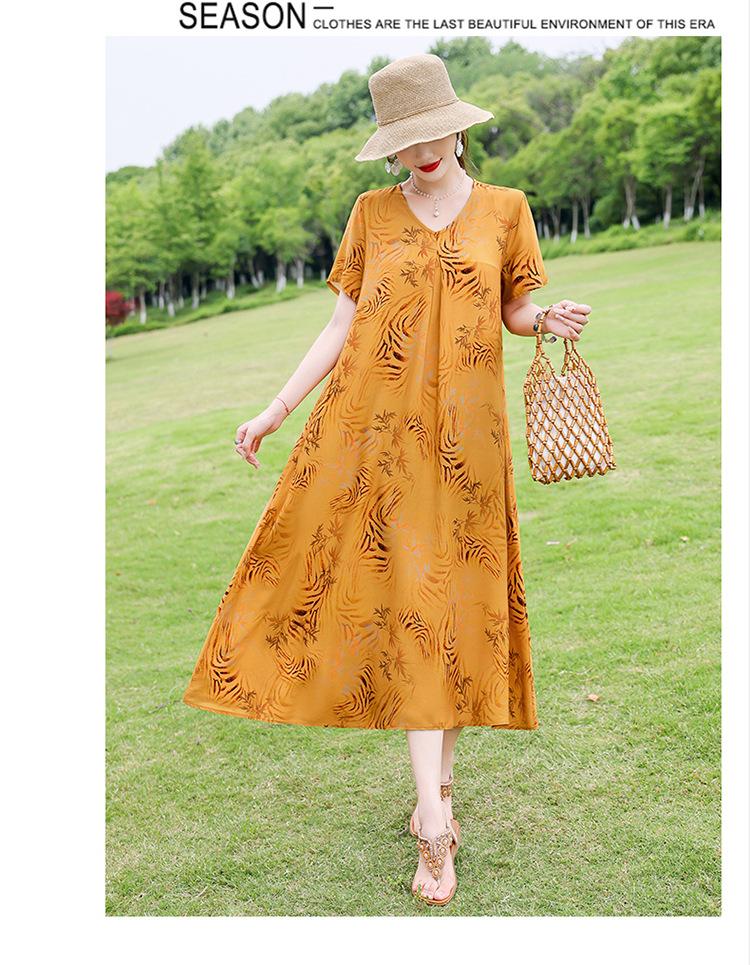 2023 novo vestido de seda de algodão de alta qualidade, moda externa de verão para mães de meia-idade, saia longa estampada com bolso para parecer magra