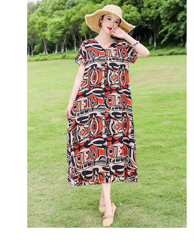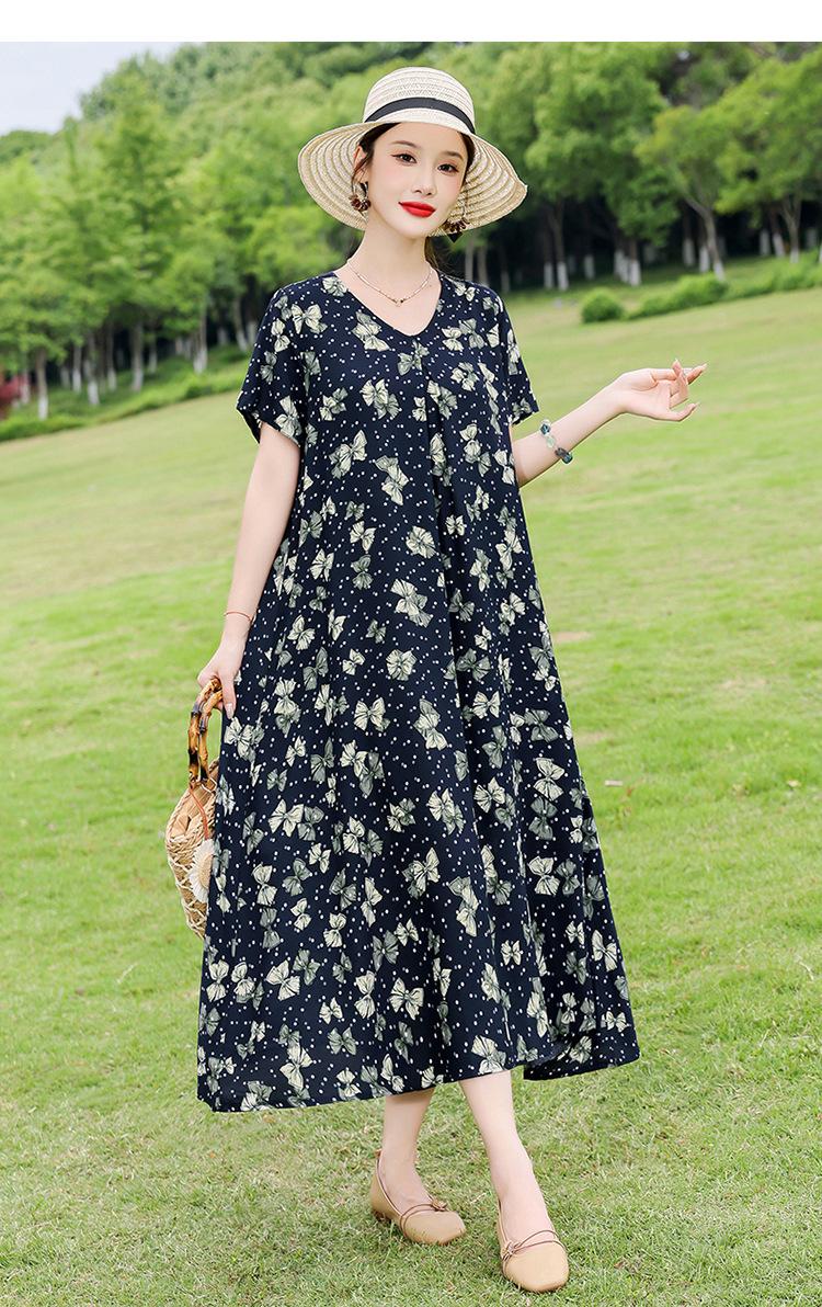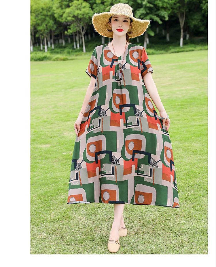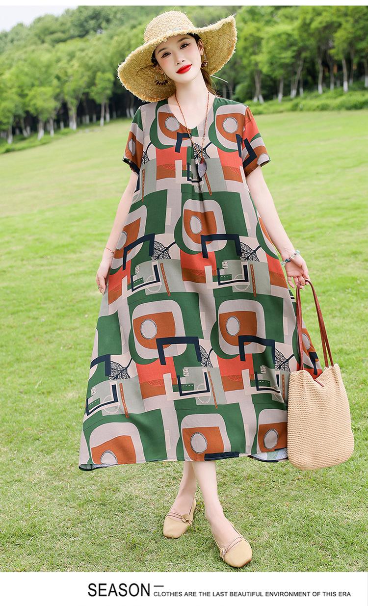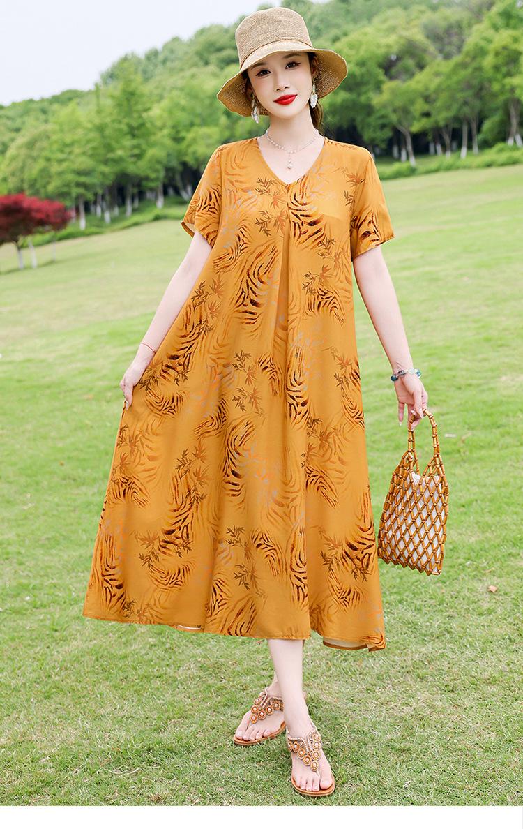 2023 novo vestido de seda de algodão de alta qualidade, moda externa de verão para mães de meia-idade, saia longa estampada com bolso para parecer magra