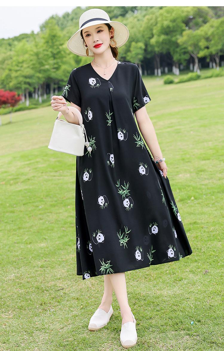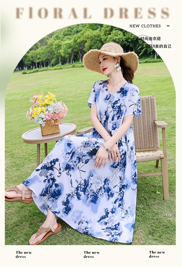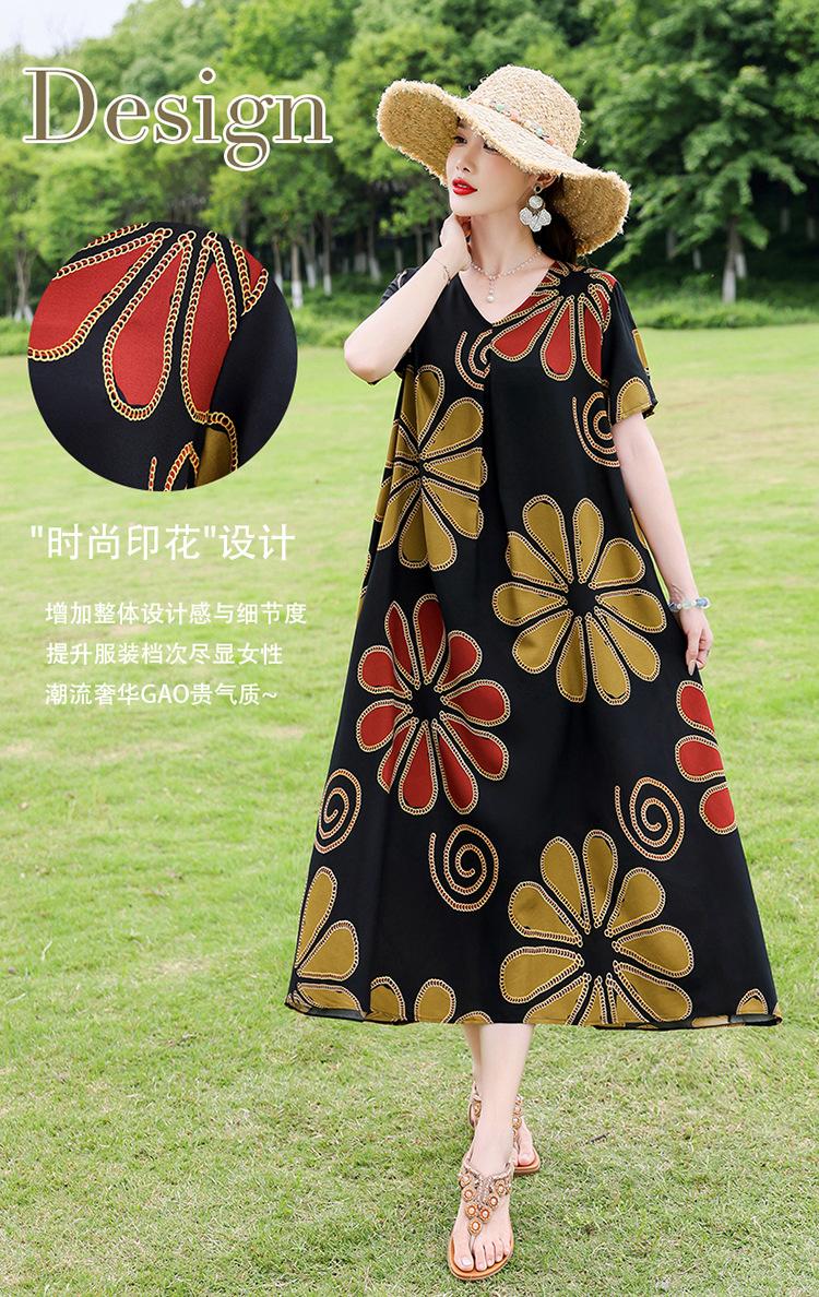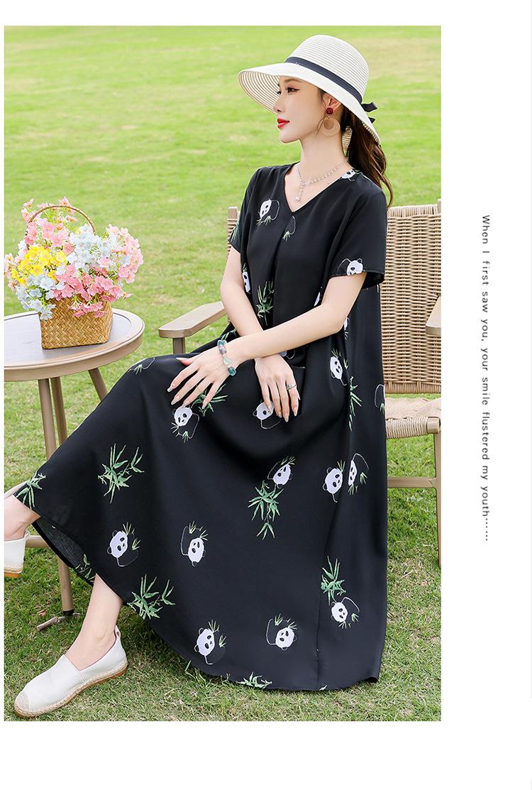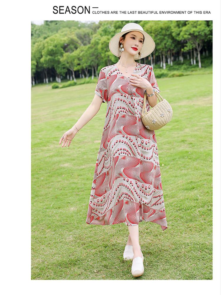 Novo temperamento high-end algodão vestido de seda para as mulheres verão high-end jovem mãe plus size grande balanço vestido de praia emagrecimento