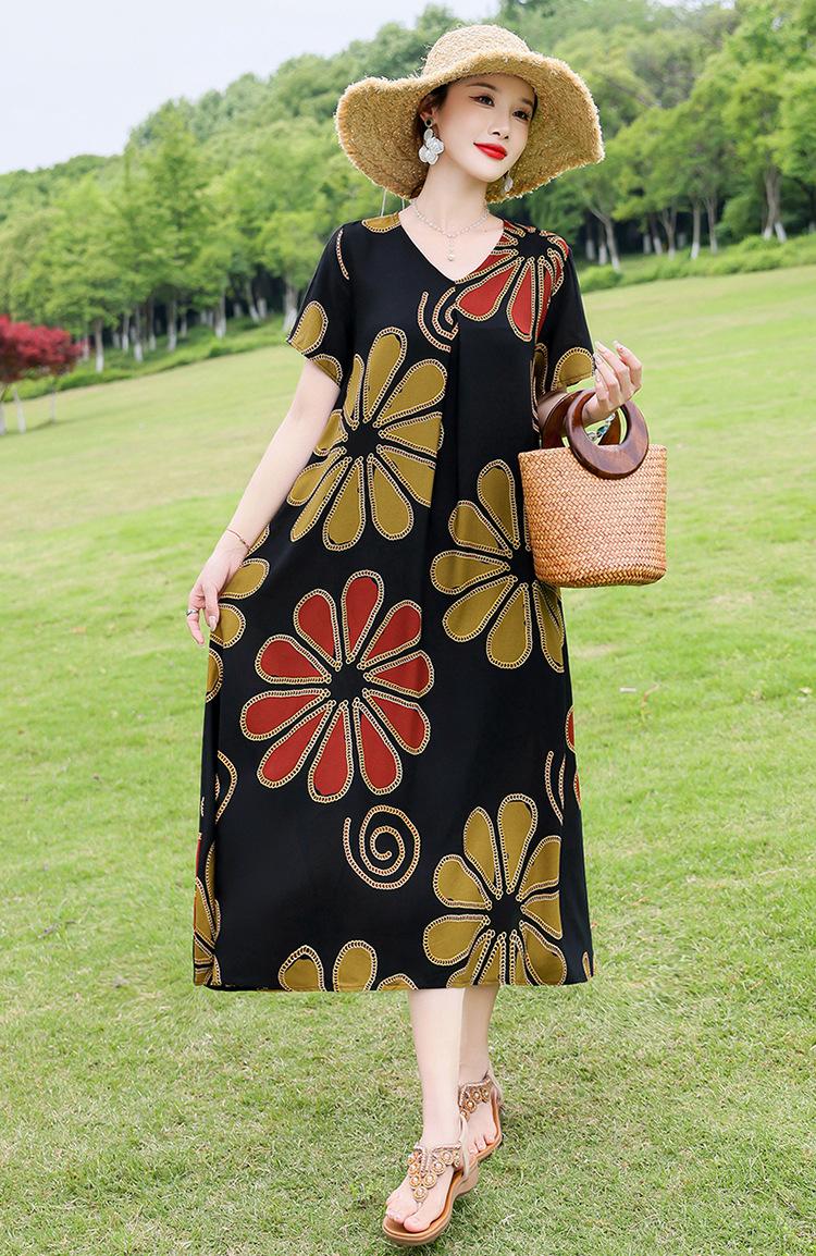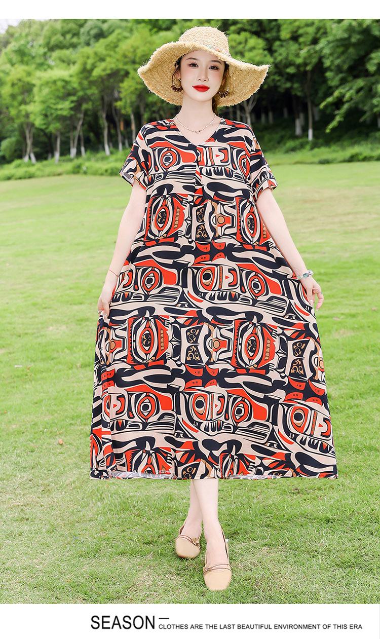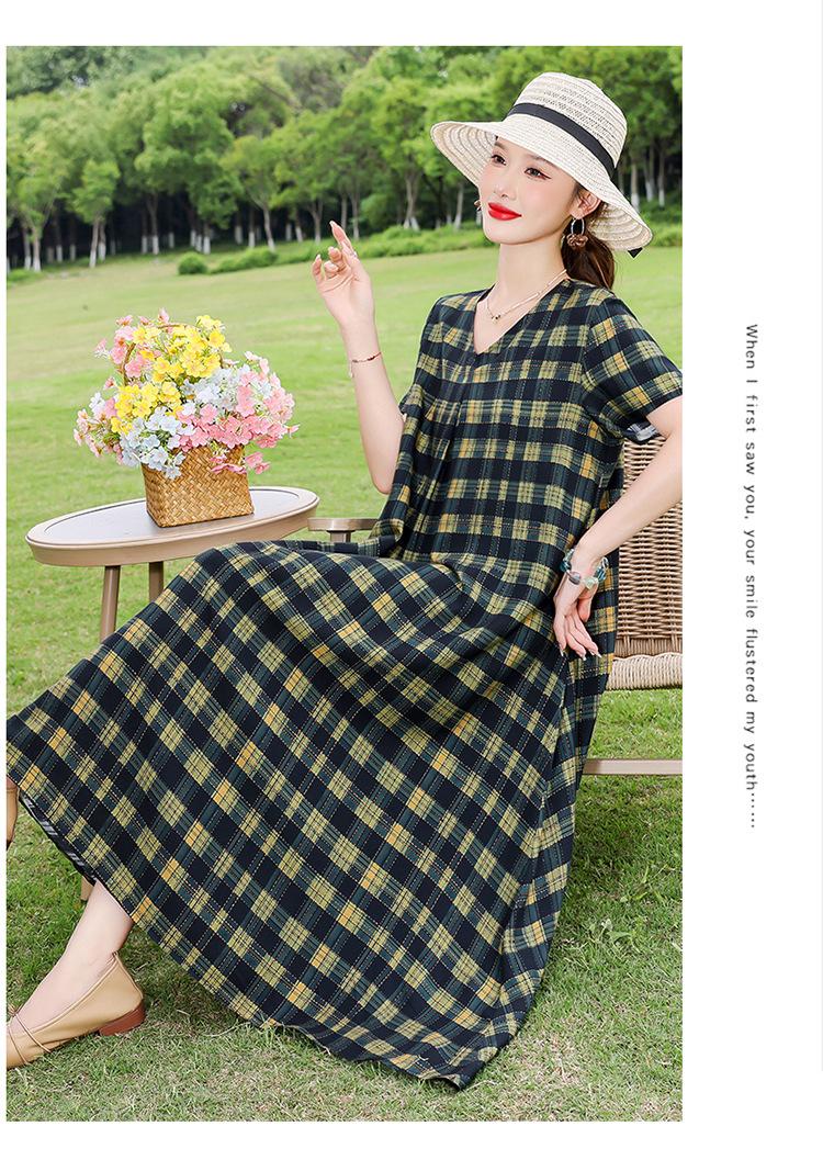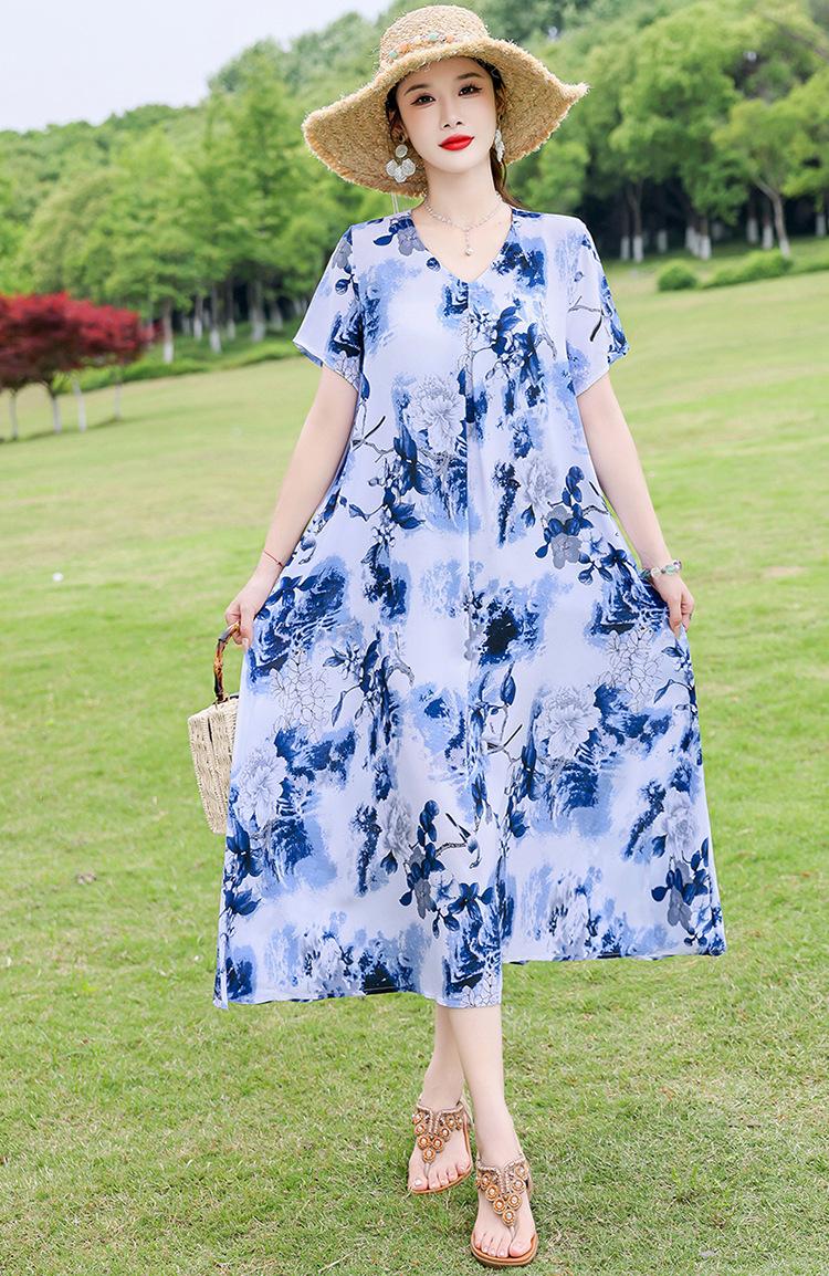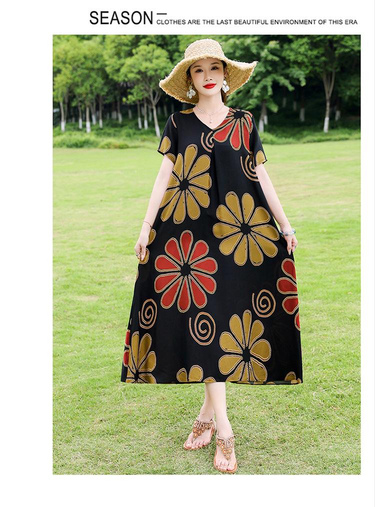 Novo temperamento high-end algodão vestido de seda para as mulheres verão high-end jovem mãe plus size grande balanço vestido de praia emagrecimento