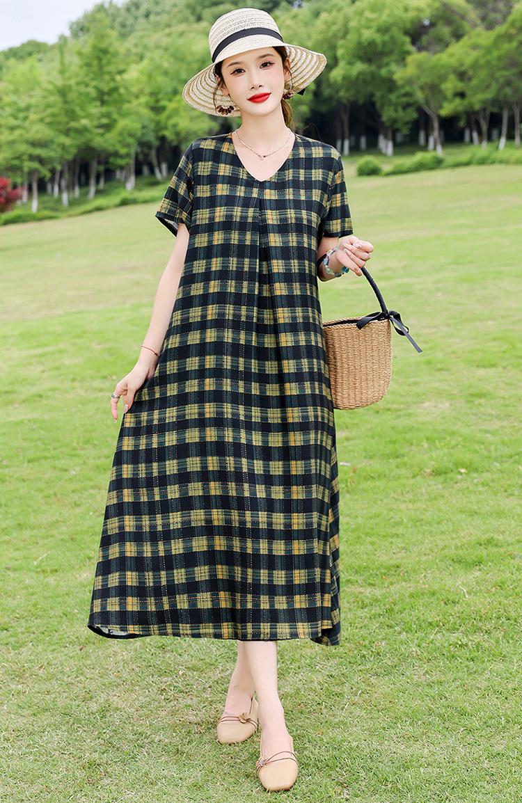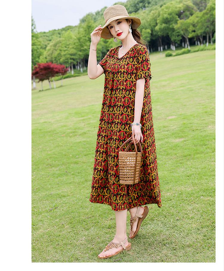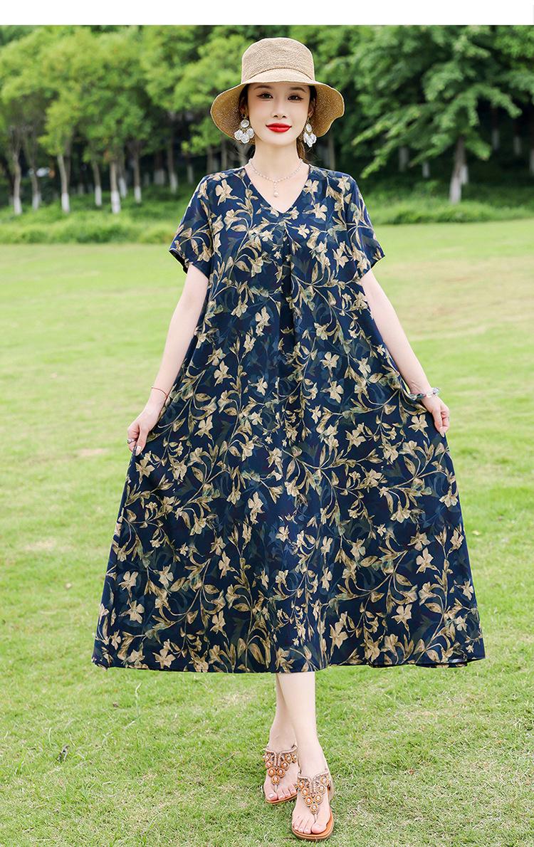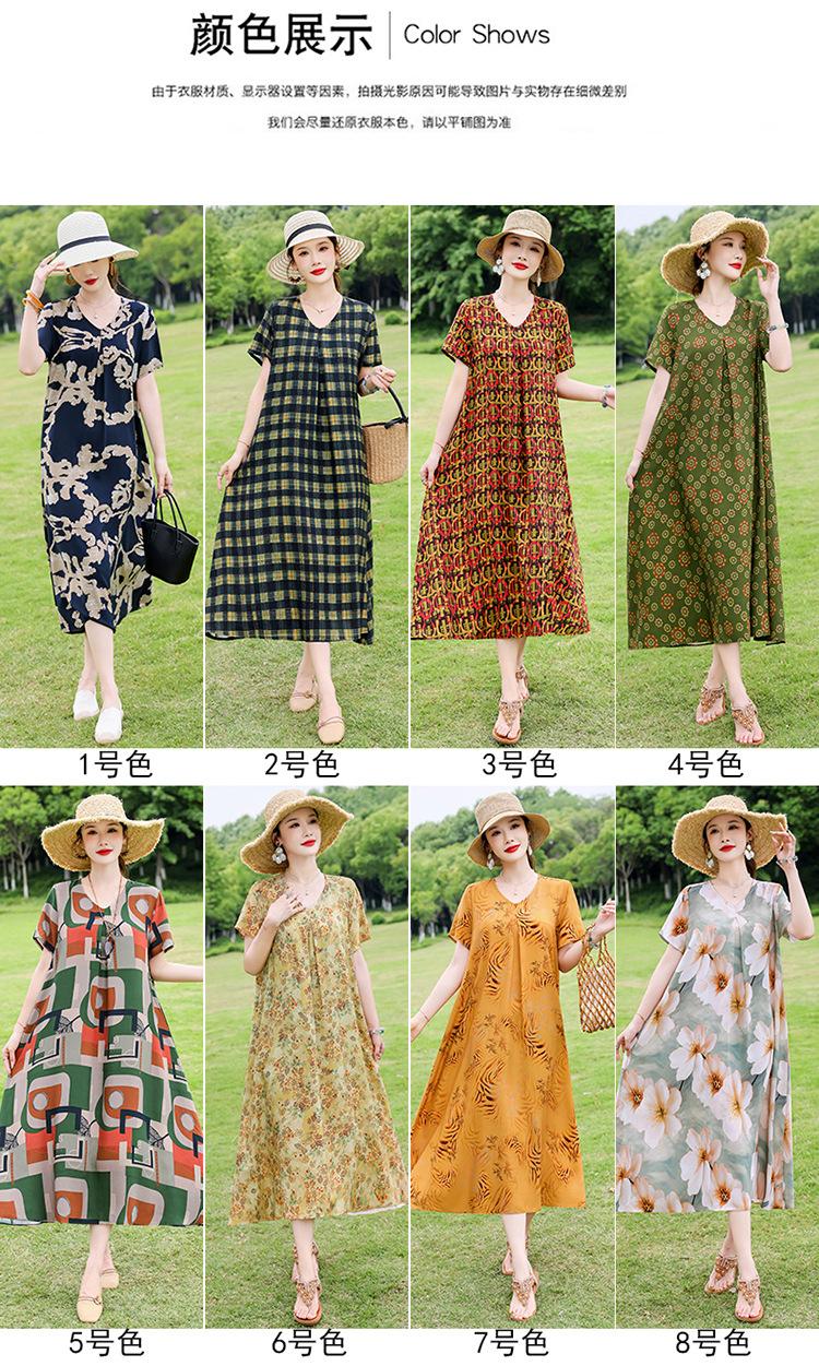 2023 novo estilo elegante vestido de seda de algodão para mães de meia idade, verão feminino plus size saia longa