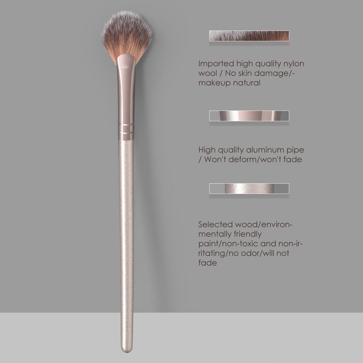 | Pincel de maquiagem profissional para contorno em formato de leque champanhe único | YD090706 | alto | OPP | Cabo de madeira/tubo de alumínio/lã de nylon | 17 | 4 |