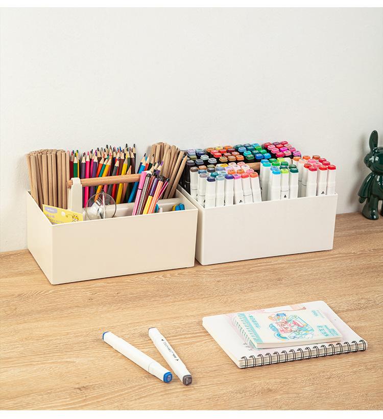 | Mesa de estudanteCaixa de armazenamento diversosPlástico PortátilCaixa de armazenamento com compartimento para canetaÂngulo reto de grande capacidadecaixa de papelaria |