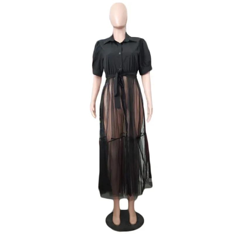Roupas Femininas Europeias e Americanas Amazon 2022 Novo Vestido Camisa Feminino Outono Recortes em Tela Sexy Moda Camisa Garota Quente